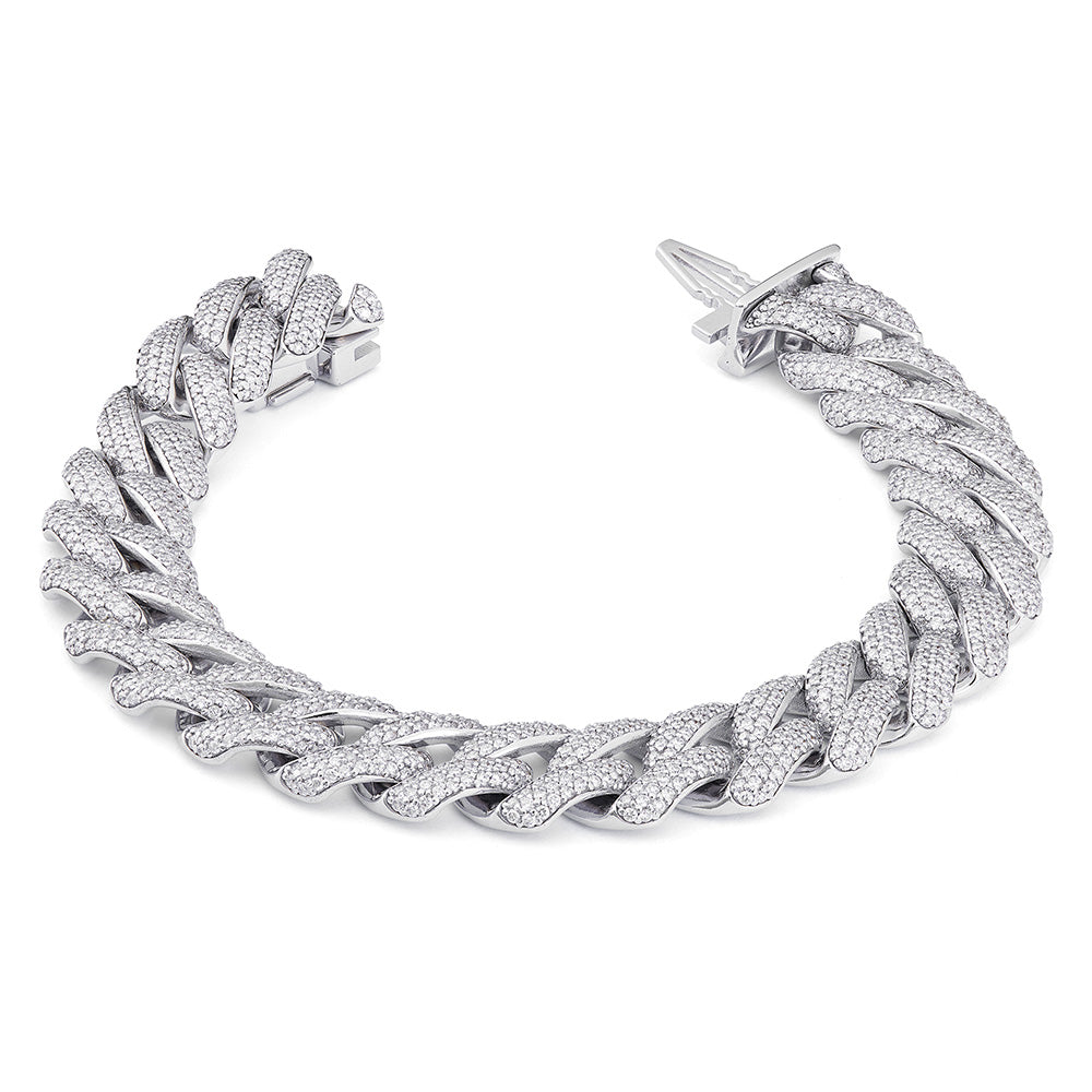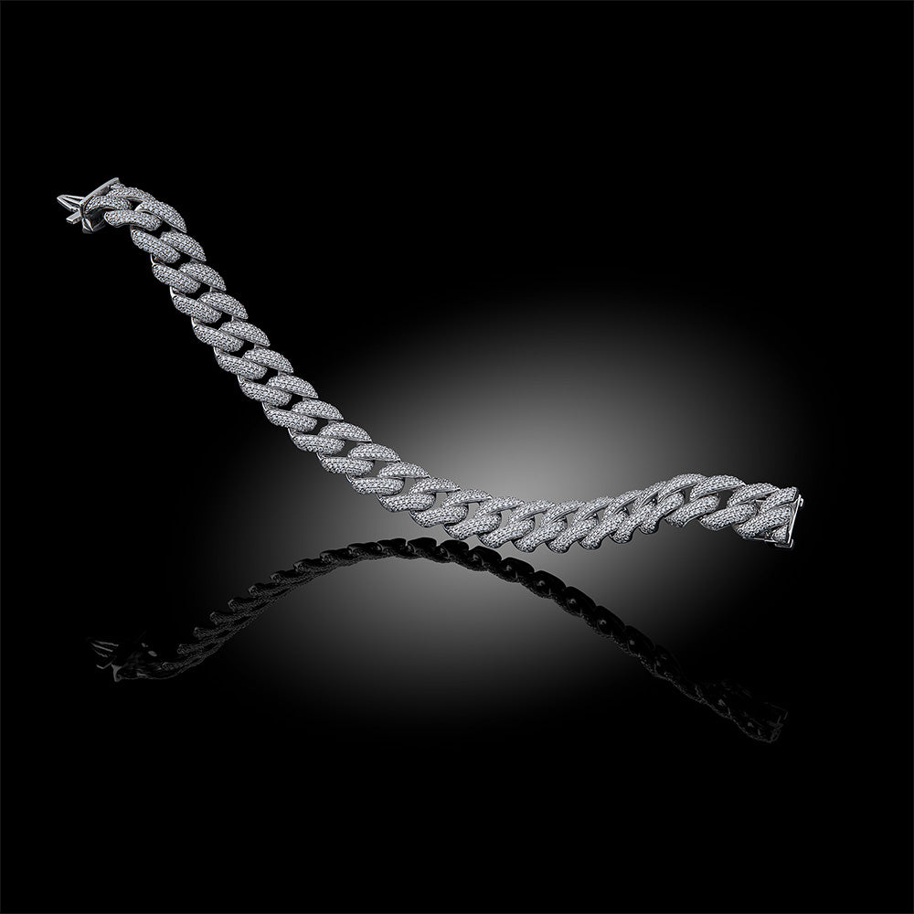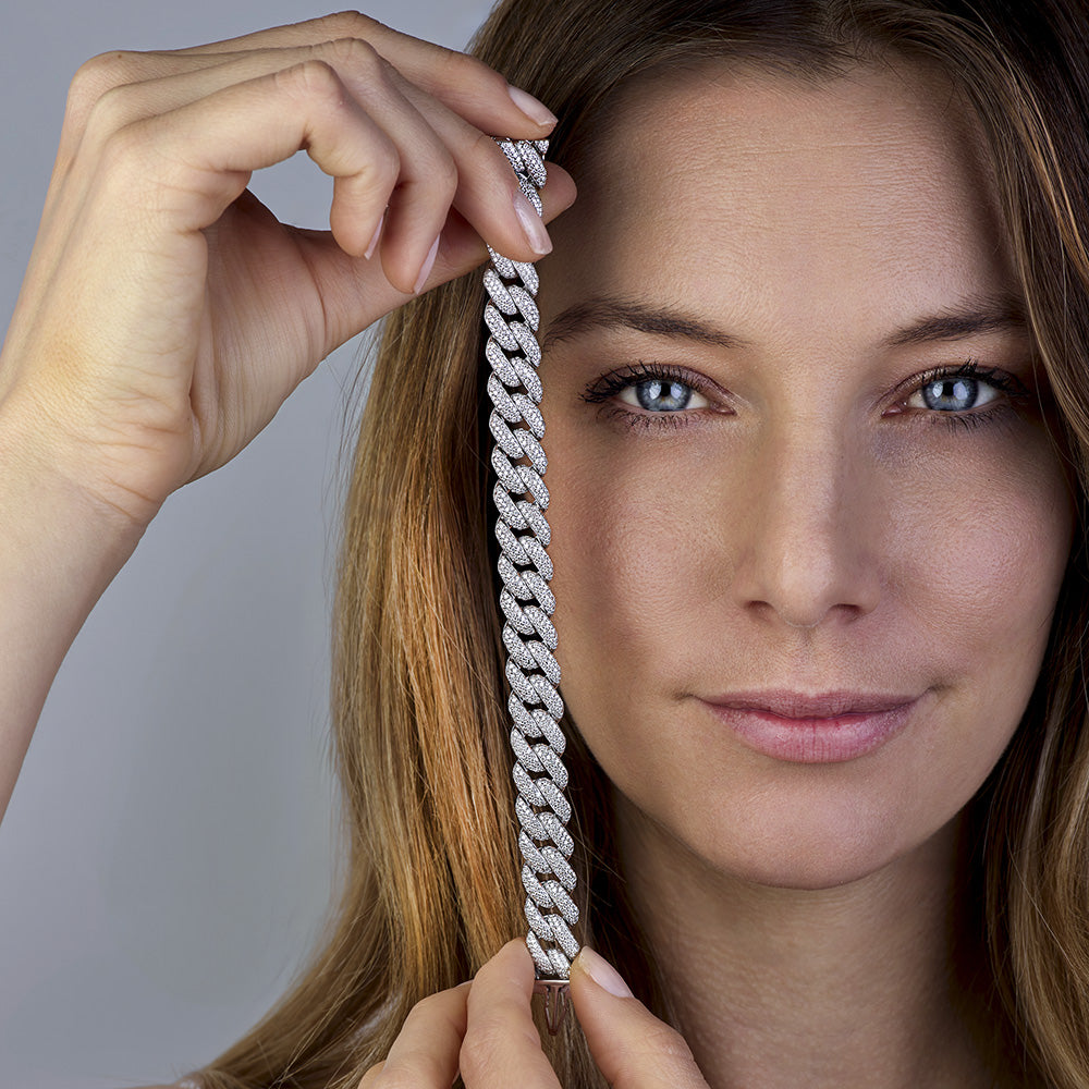 Un gioiello che parla di forza, eleganza e stile senza tempo. Il bracciale della Collezione “Cuba” è una creazione esclusiva in oro bianco 18 Kt., interamente realizzata a mano con l’antica tecnica della microfusione. Ogni dettaglio racconta la passione per la manifattura artigianale di alta qualità, orgoglio del vero Made in Italy.