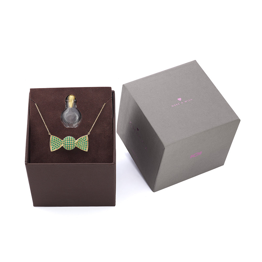 Sul retro del pendente, una fessura discreta accoglie il prezioso cuoricino “Make a Wish” in oro giallo 18 Kt., custodito in un’ampolla in vetro di Murano, modellata a mano secondo l’antica tecnica della soffiatura veneziana. Affida a questo cuore un desiderio, una promessa o un pensiero d’amore: resterà protetto per sempre all’interno della tua Chicca, accompagnandoti come un segreto prezioso. La forma sferica del pendente simboleggia energia in movimento, perfezione e continuità, evocando la magia di un talismano luminoso. Magic Brazil, fatto completamente a mano, non è solo una collana: è un invito a brillare con autenticità, stile e un tocco di magia verde.