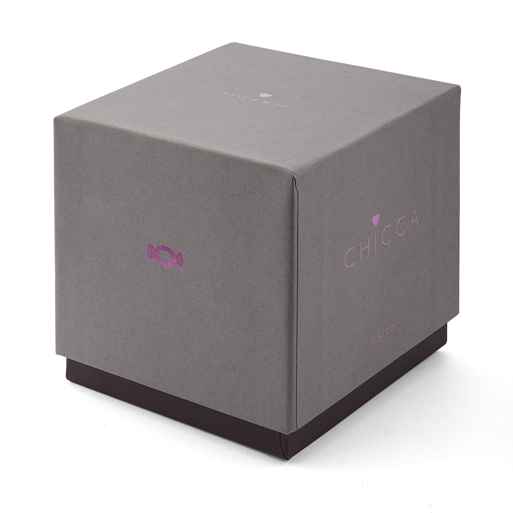 Sul retro del pendente si cela una fessura che custodisce un segreto prezioso: il cuoricino “Make a Wish” in oro giallo 18 Kt., racchiuso in un’ampolla in vetro di Murano, realizzata artigianalmente dai maestri vetrai veneziani con l’antica tecnica della soffiatura del vetro. Un dettaglio unico che trasforma ogni collana in un simbolo personale di amore, desiderio e protezione. Affida al tuo cuore d’oro un pensiero, una promessa o un sogno: rimarrà custodito per sempre nella tua Chicca, accompagnandoti come un talismano prezioso.