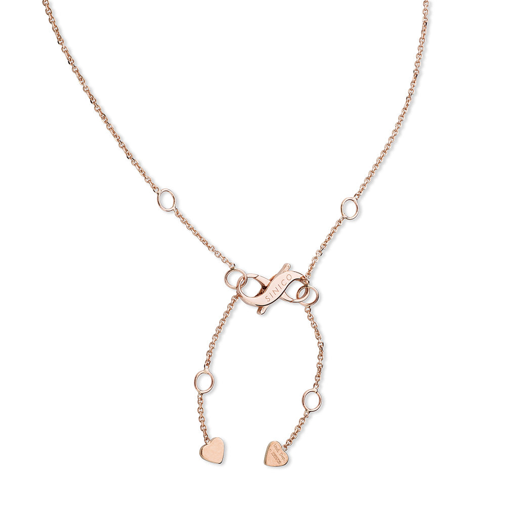 Realizzata interamente a mano in oro rosa 18 Kt., la Red Glossy si distingue per la sua parte centrale a forma di caramella, dal design rotondo e dalla superficie lucida che riflette la luce con straordinaria intensità. La catena forzatina diamantata, regolabile da 38,50 a 46,50 cm, è impreziosita da una chiusura in oro rosa a forma di infinito, simbolo di legami eterni e indissolubili. Ogni dettaglio è curato con estrema precisione grazie alla tecnica della microfusione, che garantisce forme perfette e finiture impeccabili.