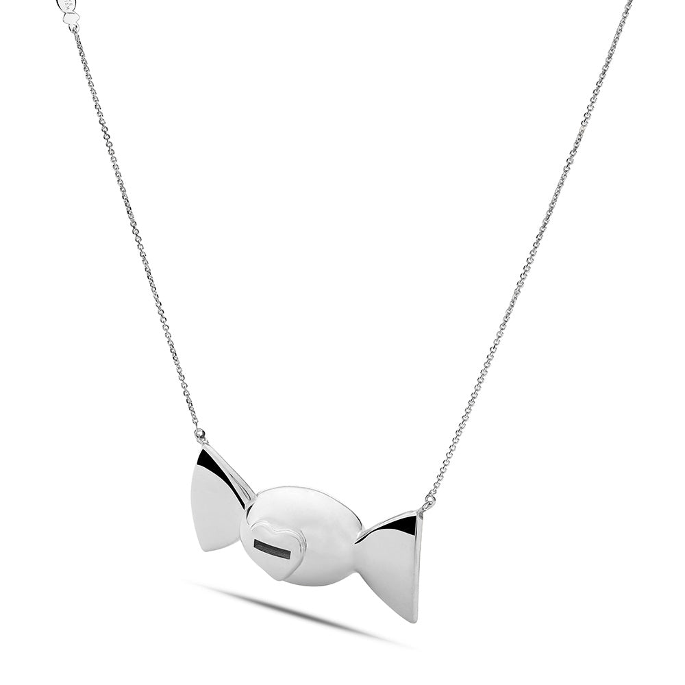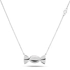 Realizzata interamente a mano in oro bianco 18 Kt., la White Glossy si distingue per la sua parte centrale a forma di caramella ovale, dal profilo armonioso e dalla superficie lucida che riflette la luce con eleganza e delicatezza. La catena forzatina diamantata, regolabile da 38,50 a 46,50 cm, è impreziosita da una doppia chiusura in oro bianco a forma di infinito, simbolo di legami eterni e indissolubili, che aggiunge un tocco di raffinatezza e funzionalità al design complessivo. Ogni dettaglio nasce da una manifattura artigianale di alta qualità, espressione autentica dell’eccellenza del Made in Italy.