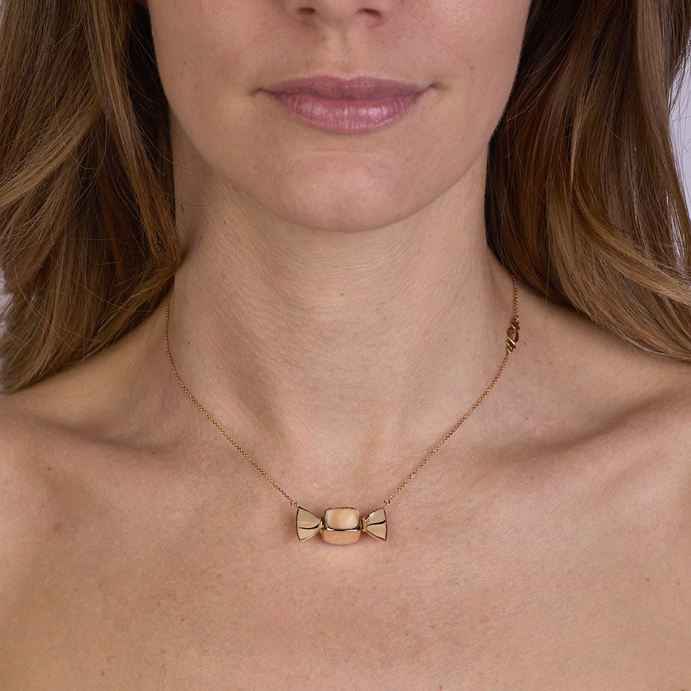 Esplora la dolce eleganza della Linea Chicca, Collezione Sugar, con la collana Red Glossy, un gioiello pensato per chi desidera indossare un dettaglio ricercato, unico e ricco di significato. Questa creazione in oro rosa 18 Kt. unisce design contemporaneo, artigianalità italiana e una forte componente simbolica, trasformando un semplice accessorio in un’emozione da portare ogni giorno.