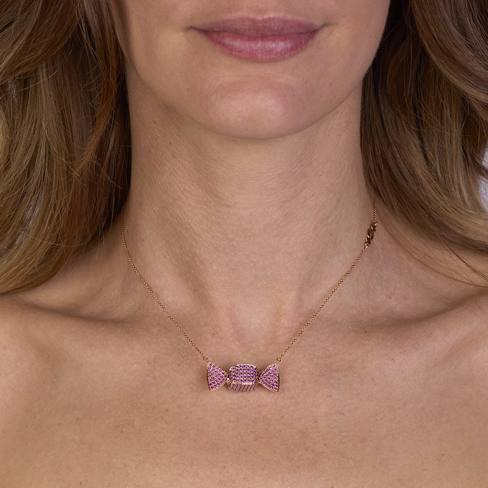 Scopri il fascino seducente della Linea Chicca, Collezione Sugar, con la collana Cherry Passion, un gioiello pensato per chi ama indossare un dettaglio prezioso dal carattere sensuale e raffinato. Realizzata in oro rosa 18 Kt., questa creazione unisce delicatezza cromatica e personalità decisa, trasformando la silhouette giocosa della caramella in un’icona di stile contemporaneo, perfetta per valorizzare look eleganti e femminili.