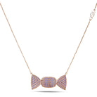 La parte centrale rettangolare e le alette frontali sono finemente incastonate a pavé con 187 zaffiri rosa naturali taglio brillante di qualità AAA, per un totale di Ct 1,96, regalando una scintilla intensa e una tonalità raffinata, simbolo di dolcezza ed energia positiva. La catena forzatina diamantata, regolabile da 38,50 a 46,50 cm, presenta una doppia chiusura a forma di infinito in oro rosa, espressione di connessioni senza tempo, studiata per offrire comodità e sicurezza. L’intera struttura è ottenuta tramite microfusione, una tecnica che garantisce precisione nelle forme e incastonatura impeccabile. Ogni dettaglio riflette l’eccellenza della manifattura artigianale italiana, completamente Made in Italy, con passante maglia posto al di sotto del corpo del pendente per garantire armonia e continuità estetica.