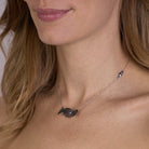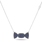 La parte centrale rettangolare e le alette frontali sono finemente incastonate a pavé con 187 zaffiri blu naturali taglio brillante di qualità AAA, per un totale di Ct 1,96, rendendo la superficie vibrante e magnetica. L’area incastonata è ulteriormente trattata con rutenio nero, che intensifica il contrasto cromatico, accentua la brillantezza delle pietre e dona un effetto dark-luxury di grande impatto visivo. La catena forzatina diamantata, regolabile da 38,50 a 46,50 cm, presenta una doppia chiusura a forma di infinito in oro bianco, simbolo di legami eterni e stabilità, progettata per offrire sicurezza e comfort assoluto. L’intero gioiello è realizzato tramite microfusione, garantendo precisione e armonia delle forme, espressione della migliore manifattura artigianale italiana, completamente Made in Italy, con passante maglia nascosto sotto il corpo del pendente per un’estetica impeccabile.