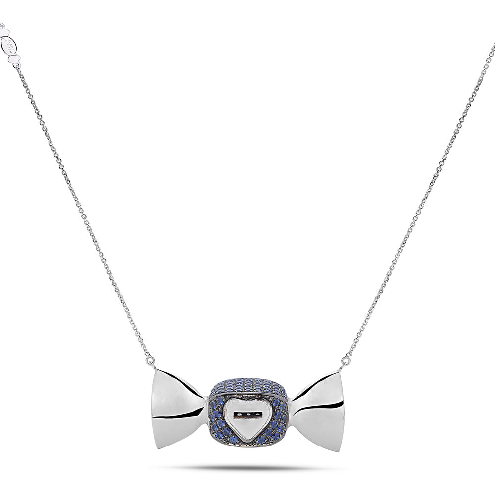 Lasciati avvolgere dall’eleganza enigmatica della Linea Chicca, Collezione Sugar, con la collana Mystery Night, un gioiello creato per chi ama distinguersi attraverso dettagli carismatici e sfumature profonde. Realizzata in oro bianco 18 Kt., questa creazione esclusiva unisce design contemporaneo e suggestioni notturne, trasformando la forma ludica della caramella in un’icona di stile dal carattere deciso.