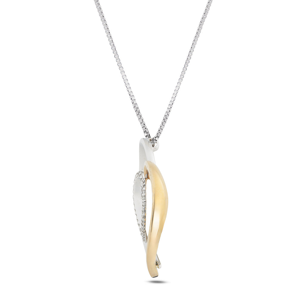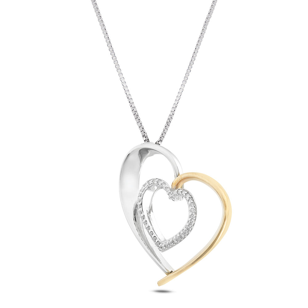 Il ciondolo a forma di cuore combina armoniosamente l'oro bianco della parte sinistra con l'oro rosa della parte destra, creando un contrasto cromatico di rara bellezza. Al centro, un secondo cuore più piccolo, completamente in oro bianco, è impreziosito da 35 diamanti di Ct. 0,15, Colore G, Purezza SI1, incastonati con la tecnica del "filo-griffe". Questo dettaglio valorizza al massimo la brillantezza delle pietre, conferendo al gioiello una luminosità senza eguali.