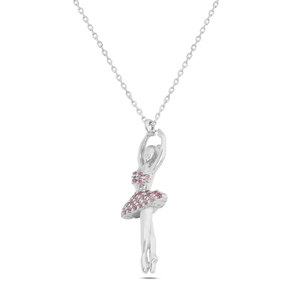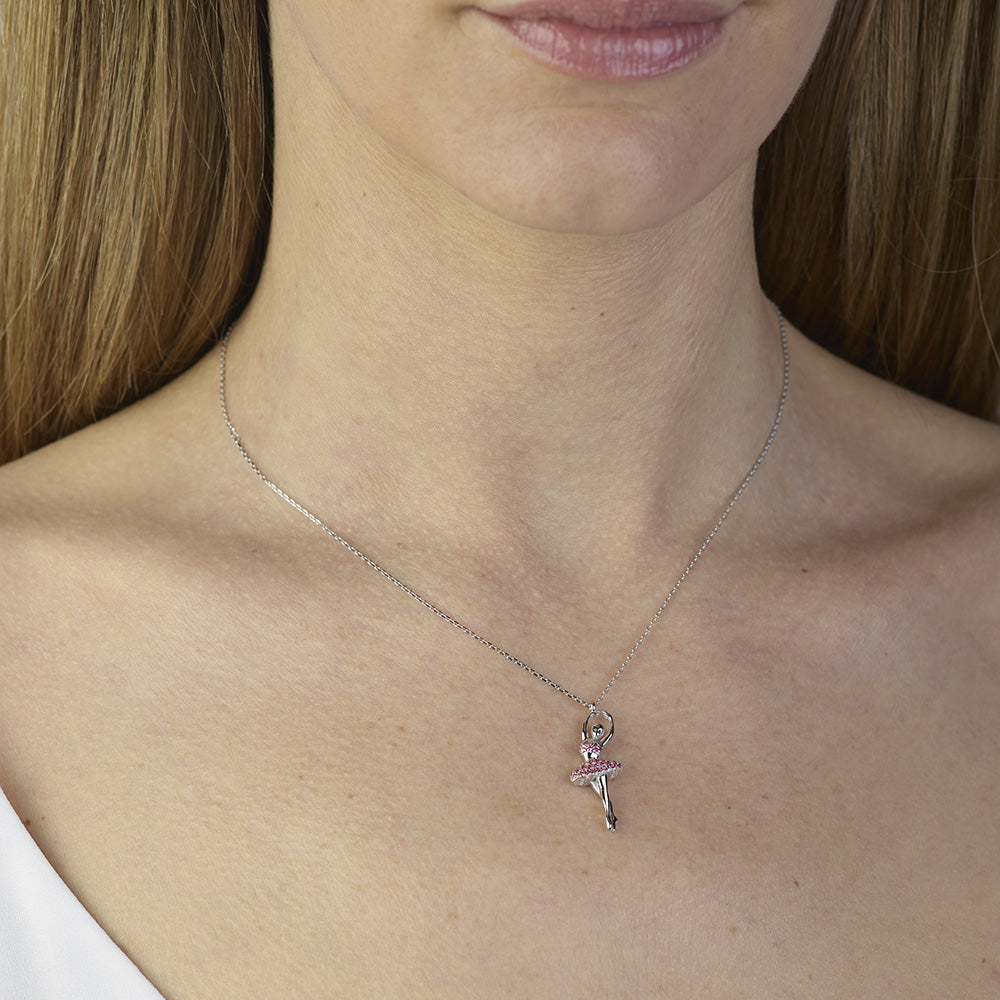 Collana "dance" ballerina grande in oro bianco con cubic zirconia rosa