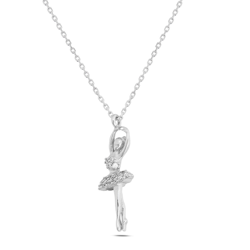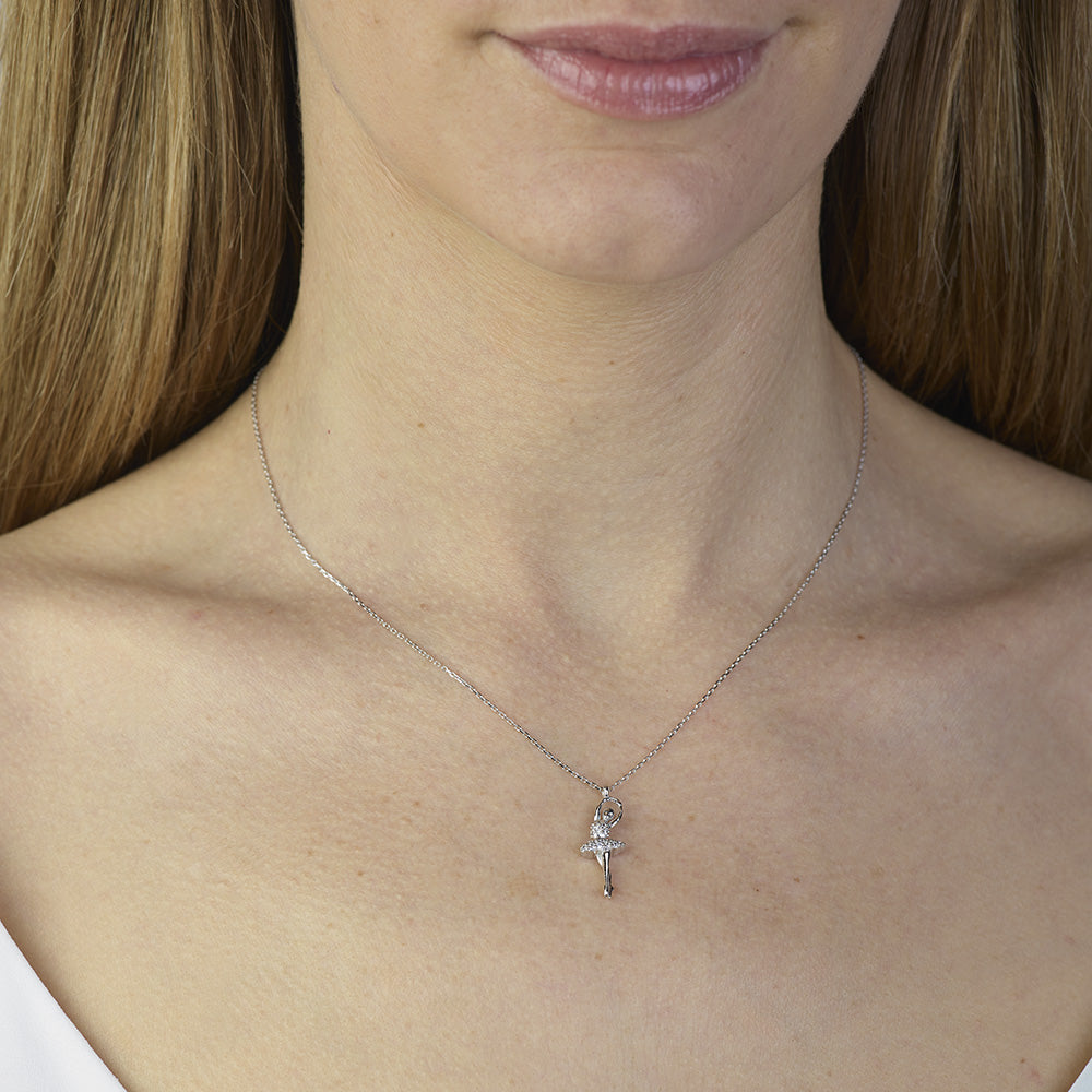 Collana "dance" ballerina piccola in oro bianco con cubic zirconia bianchi