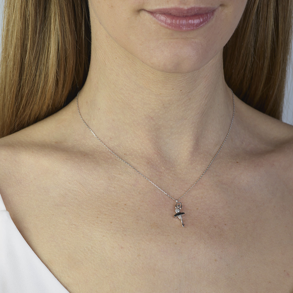 Collana "dance" ballerina piccola in oro bianco con cubic zirconia neri e bianchi