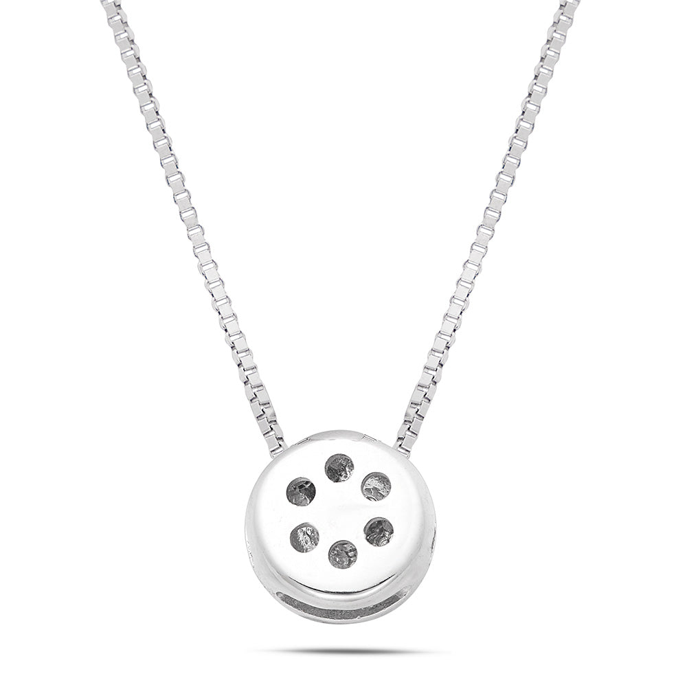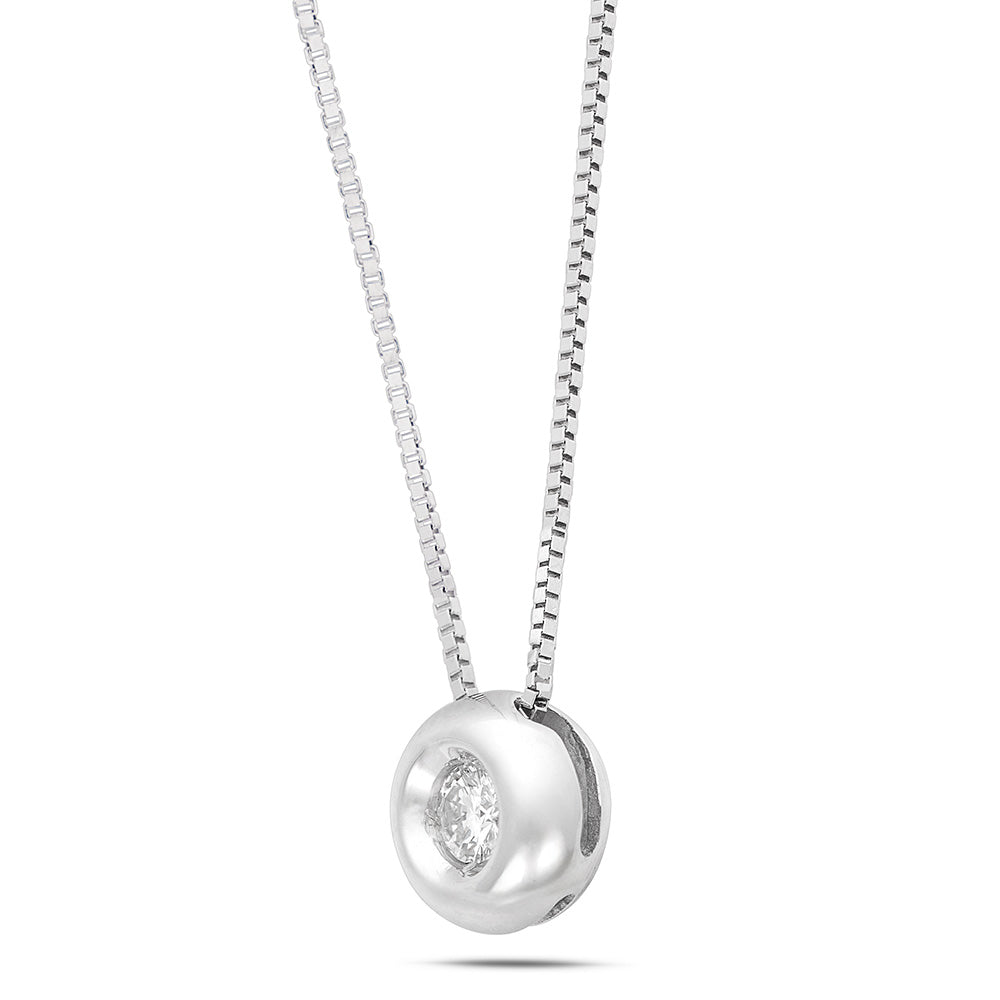 Scopri l'eleganza della nostra Collezione Donut con la collana Punto Luce in oro bianco titolo 18 Kt. Questa raffinata collana è impreziosita da un diamante centrale di Ct. 0,13, colore G e purezza Vs1, incastonato con la tecnica "a puntine" ed un effetto "a tutto tondo" che esaltano la luminosità della pietra.