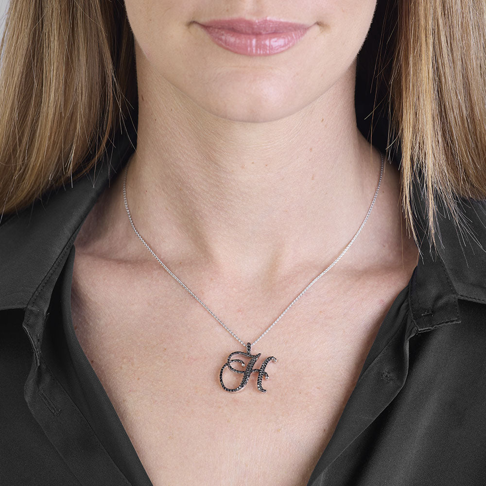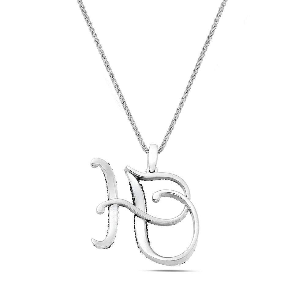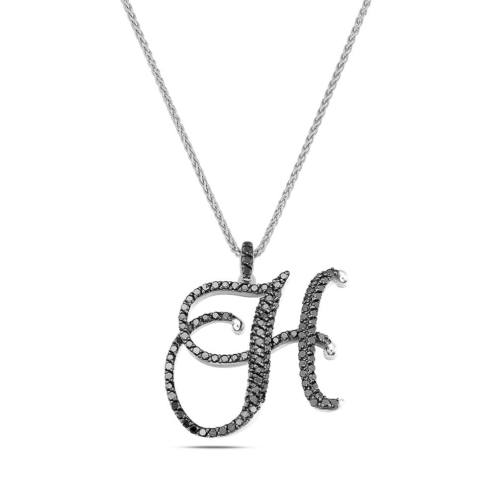 Collana lettera "H" stile barocco in oro bianco con diamanti neri
