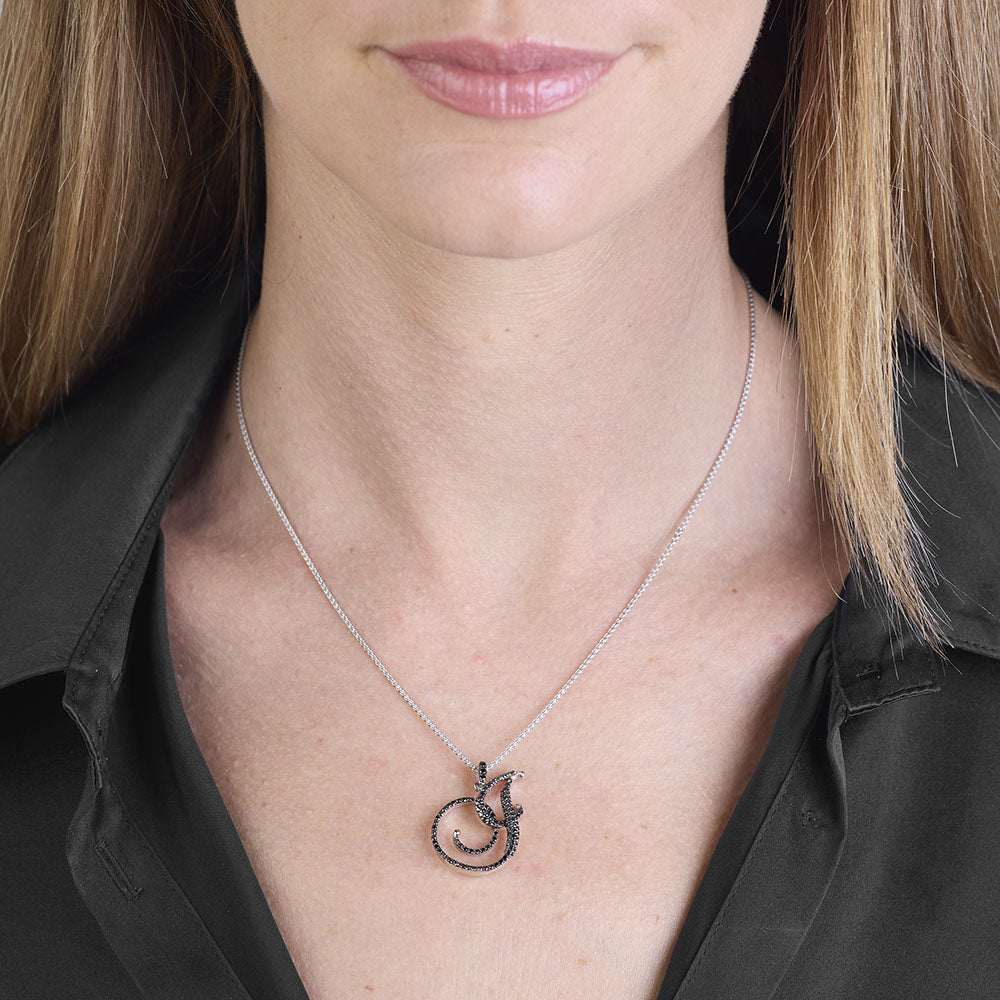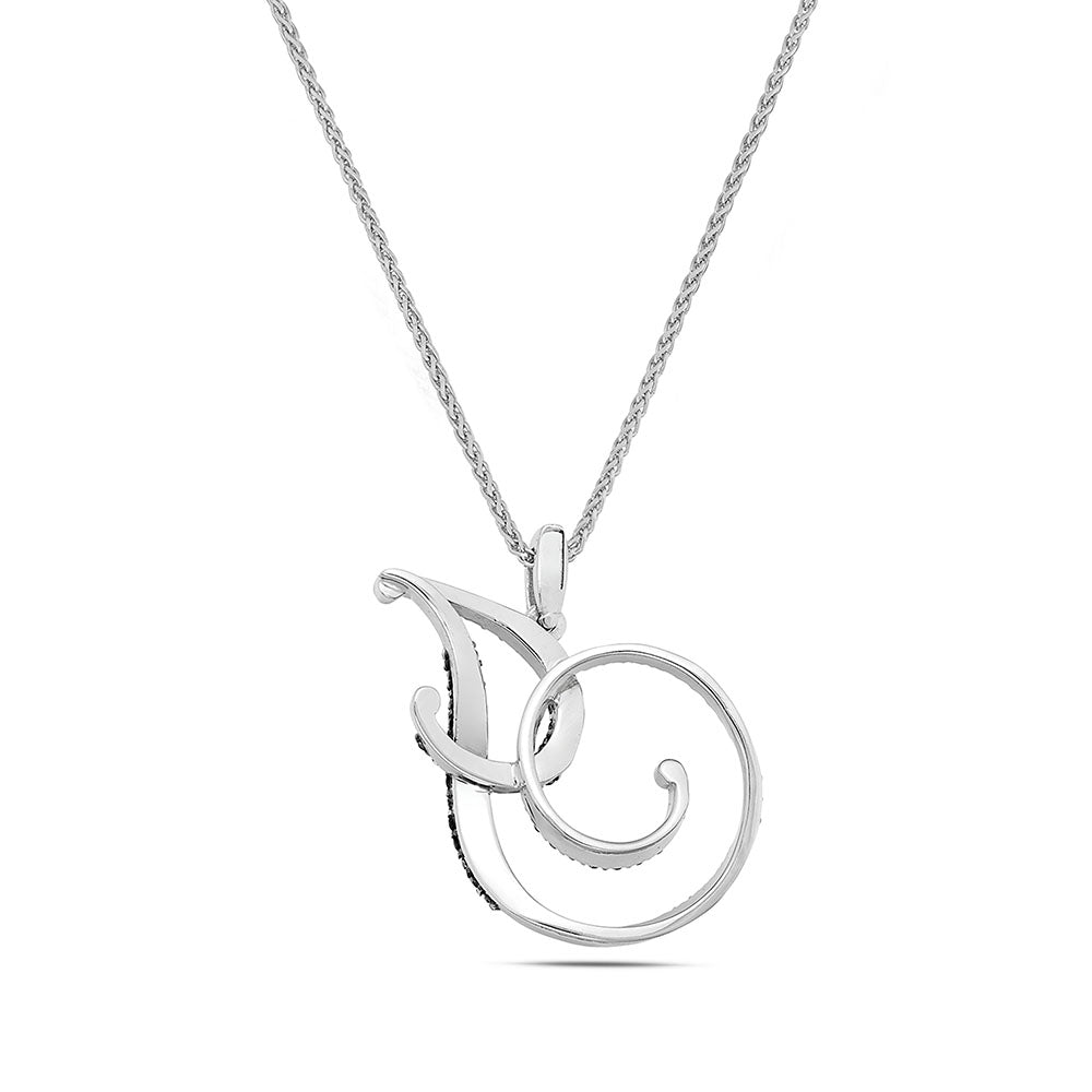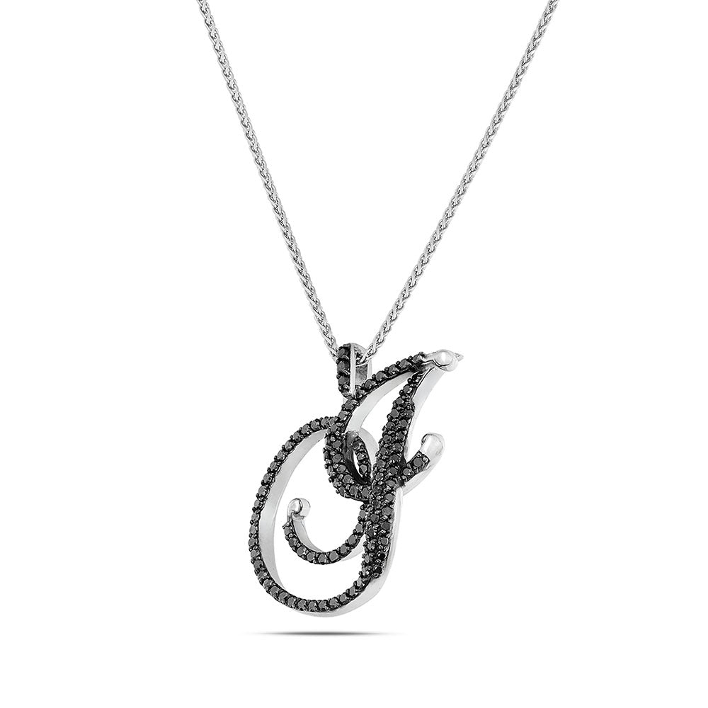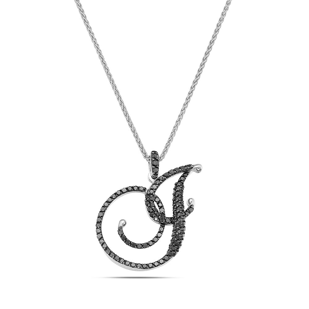 Collana lettera "J" stile barocco in oro bianco con diamanti neri