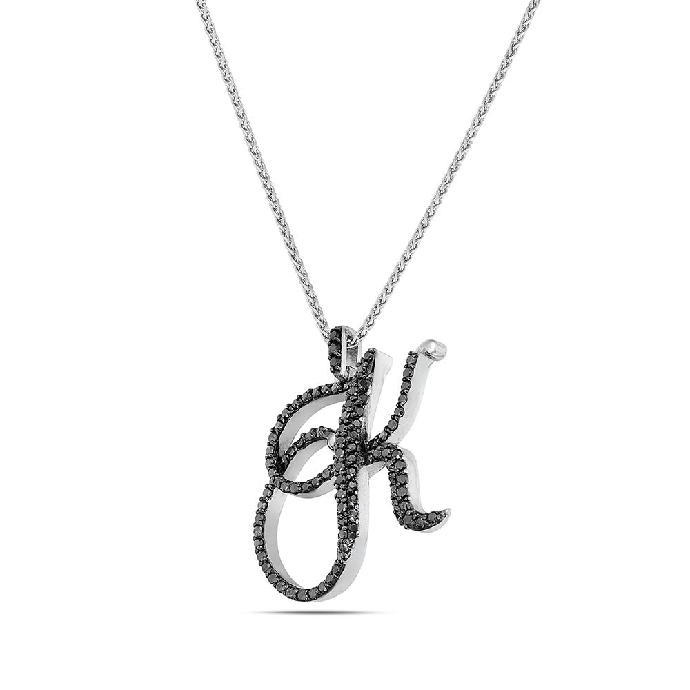 Collana lettera "K" stile barocco in oro bianco con diamanti neri