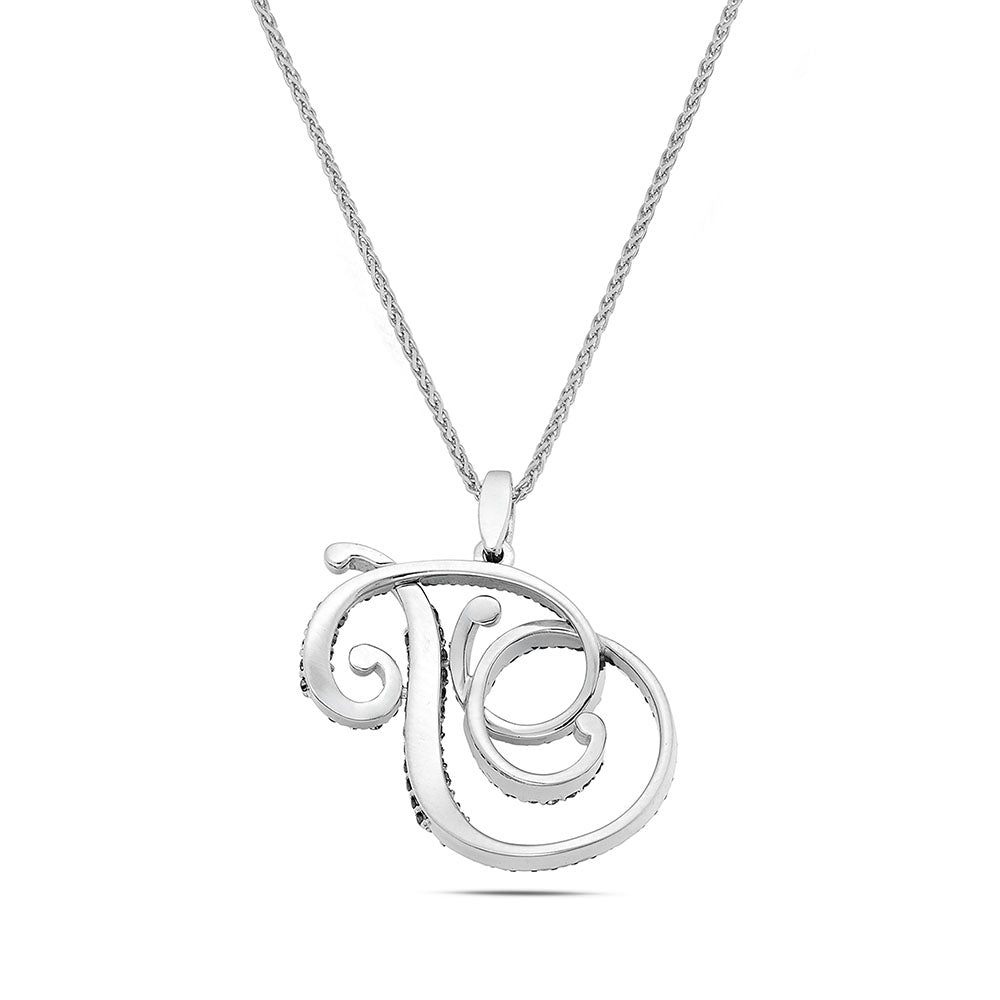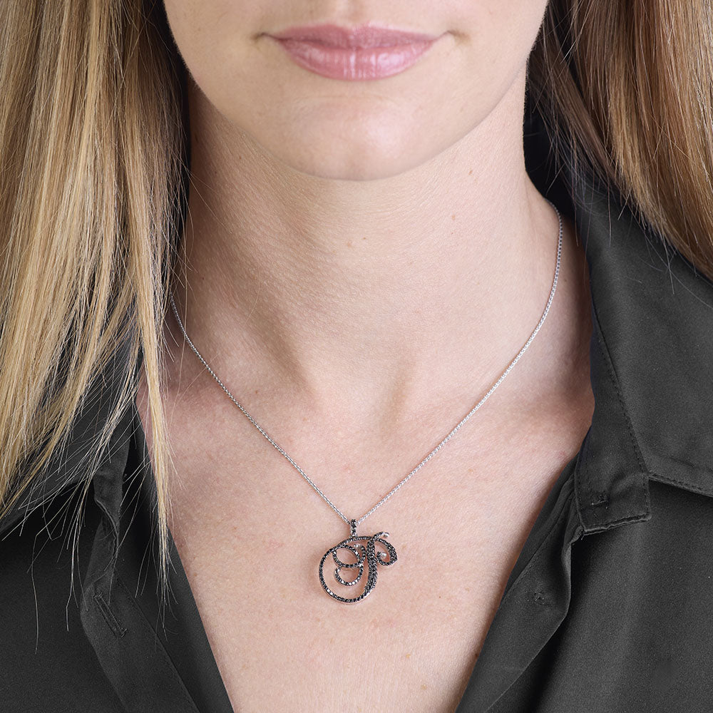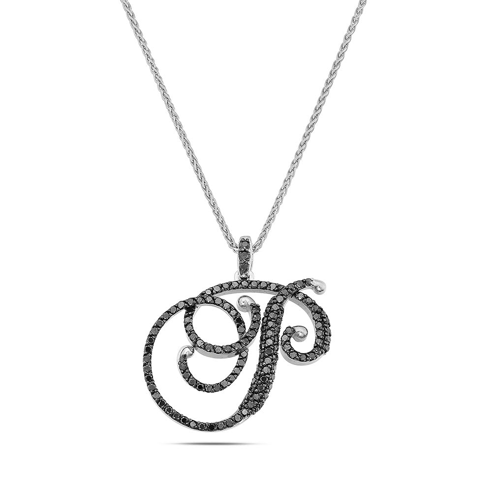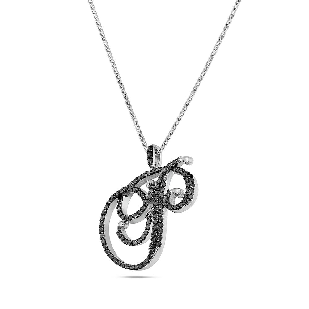 Collana lettera "P" stile barocco in oro bianco con diamanti neri