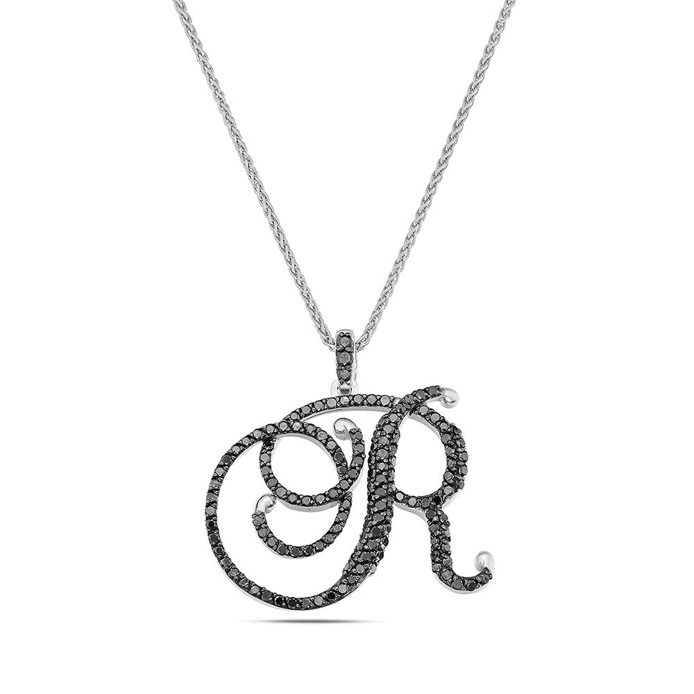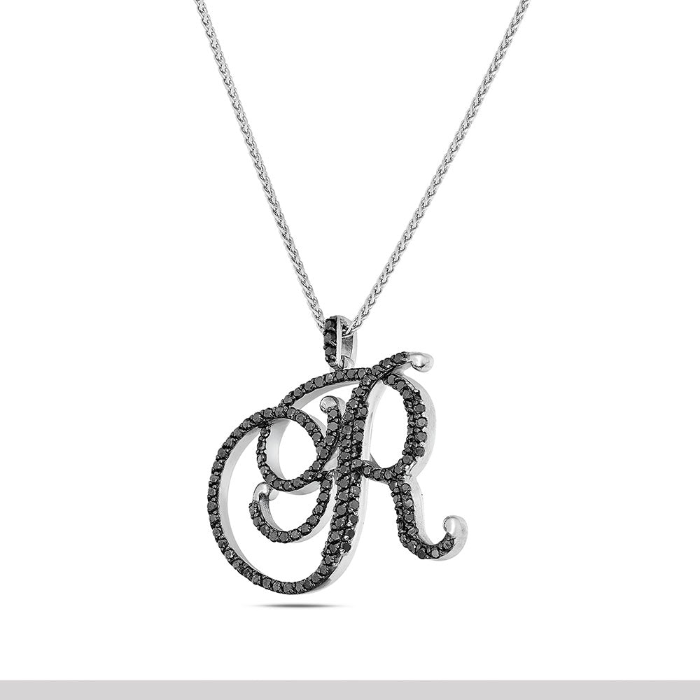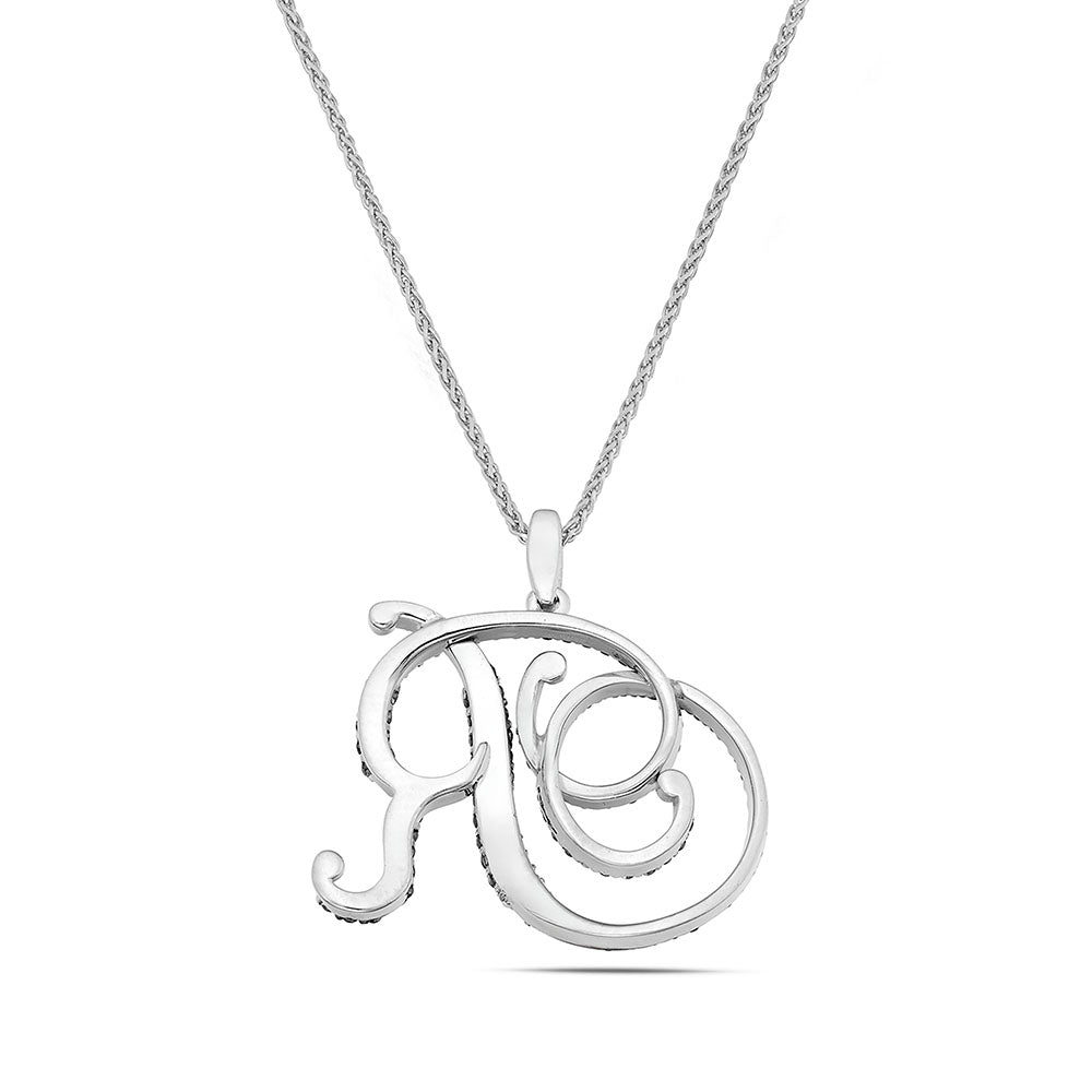 Collana lettera "R" stile barocco in oro bianco con diamanti neri