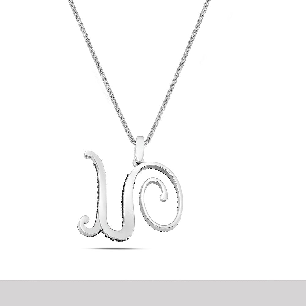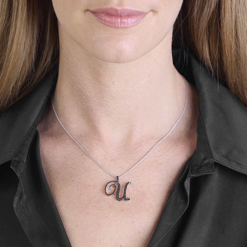 Collana lettera "U" stile barocco in oro bianco con diamanti neri