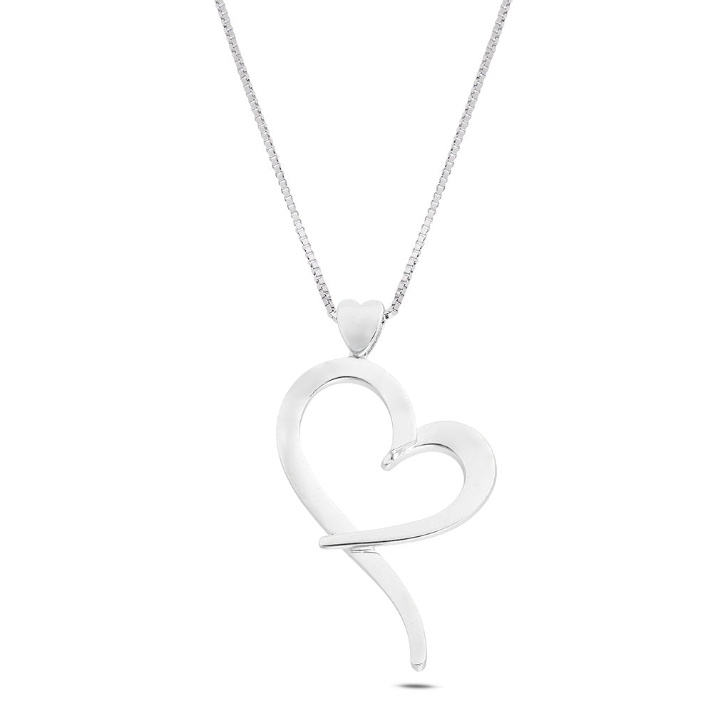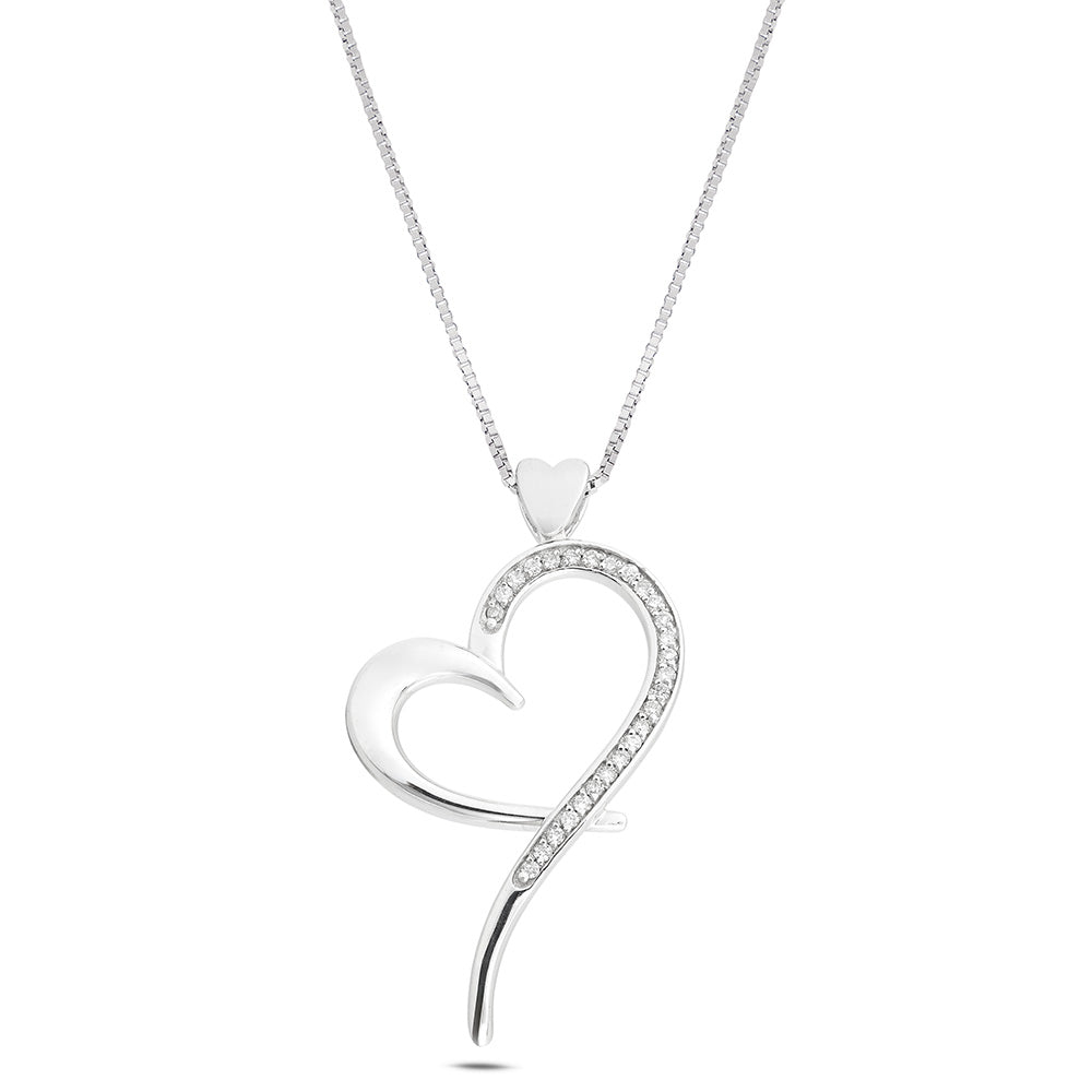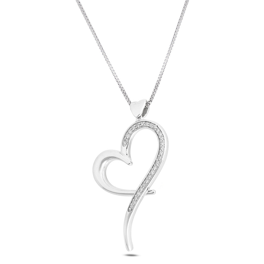 Collana "Cuore" bombato e lineare in oro bianco con diamanti