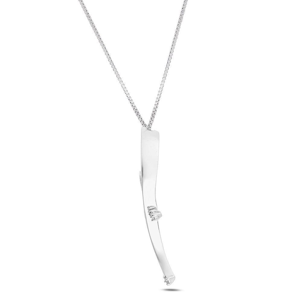 Il ciondolo, con la sua forma a cuore stilizzato, è un simbolo universale di amore e passione. L’elemento centrale, dal design lineare e specchiato, è impreziosito alle estremità da 3 diamanti naturali per un totale di Ct. 0,05, con colore G e purezza SI1. I diamanti, incastonati con la tecnica "filo-griffe", donano luminosità e delicatezza, esaltando la perfezione del gioiello.