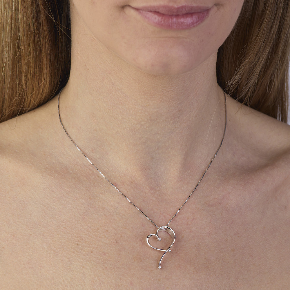 Collana "Cuore" filo specchiato in oro bianco con diamanti
