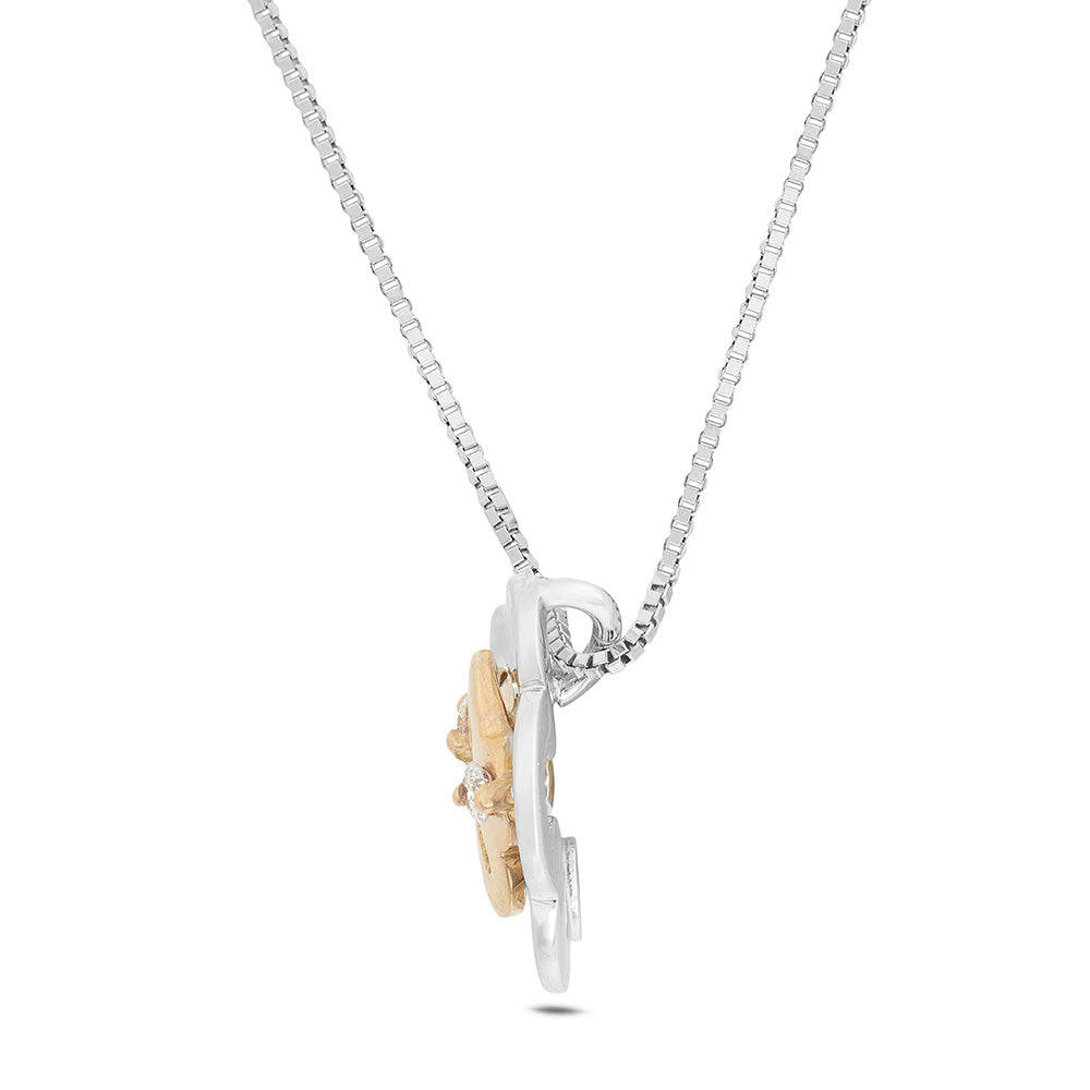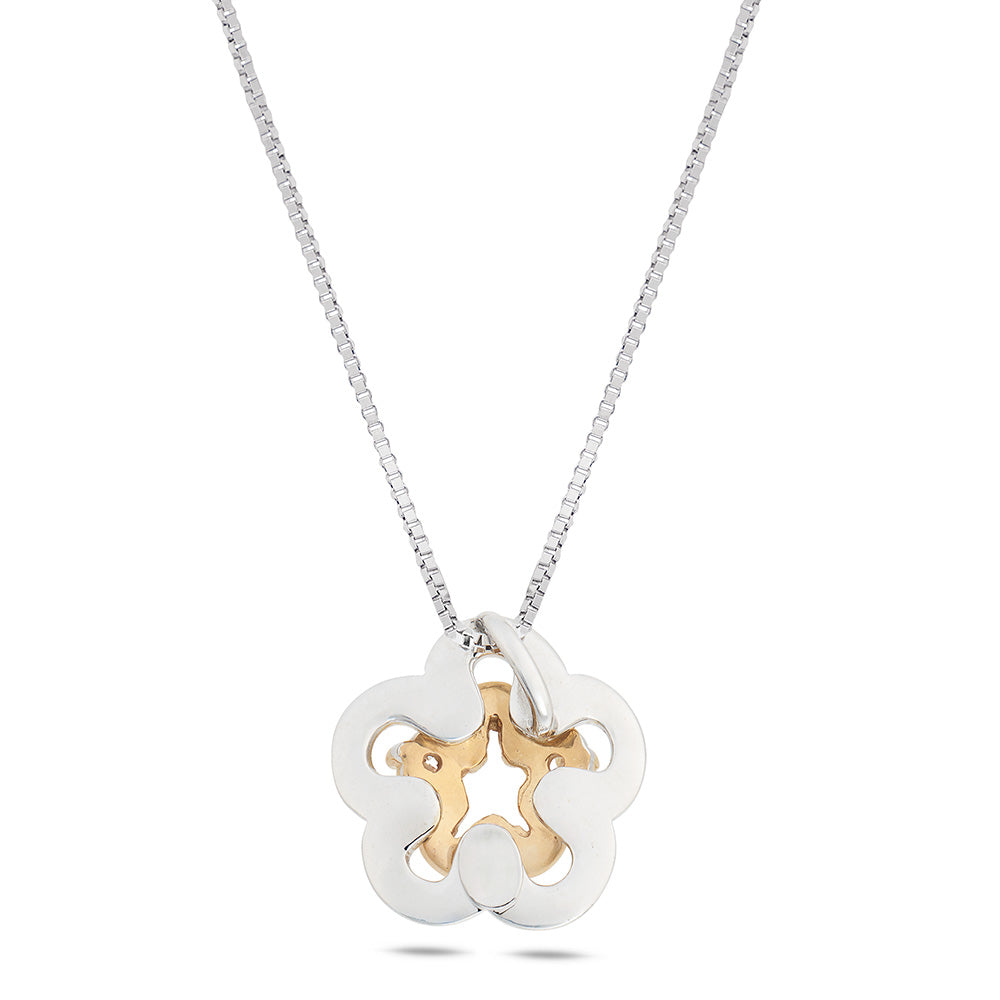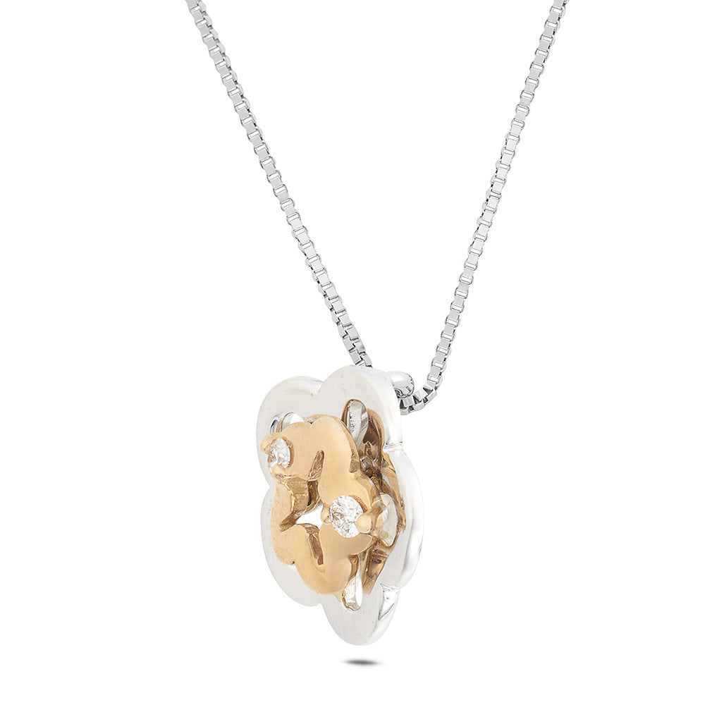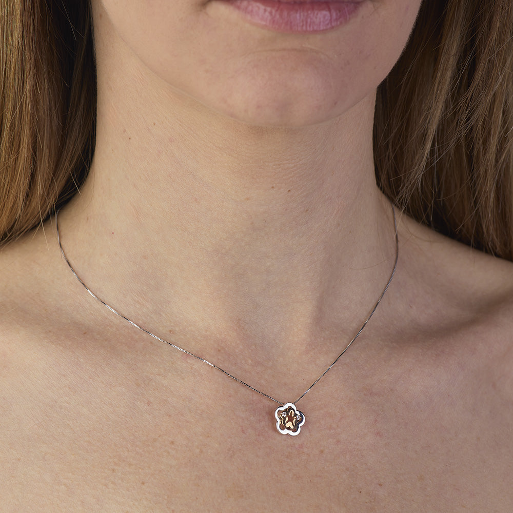 Collana Coccole, fiore in oro bianco e rosa con diamanti