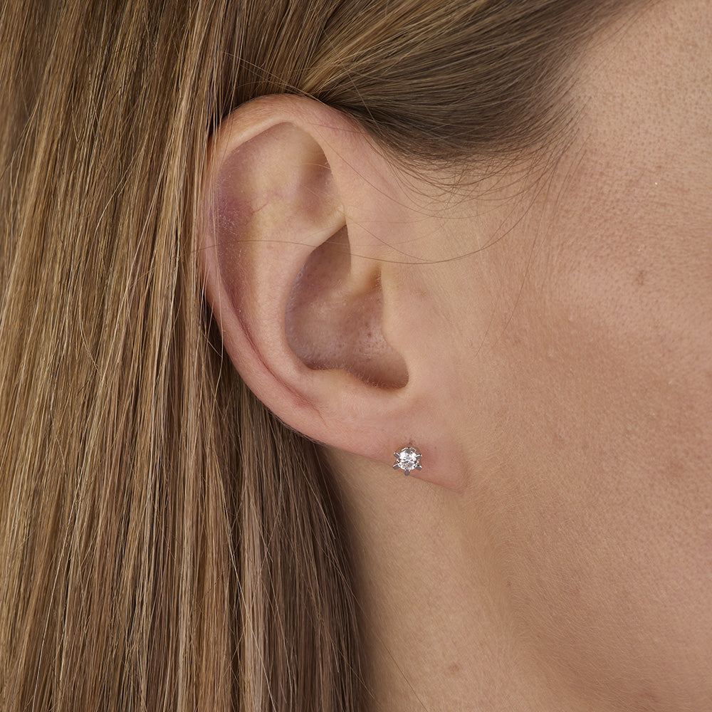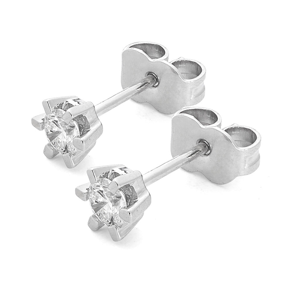 Orecchino punto luce 6 griffe quadre in oro e diamanti Ct. 0,29