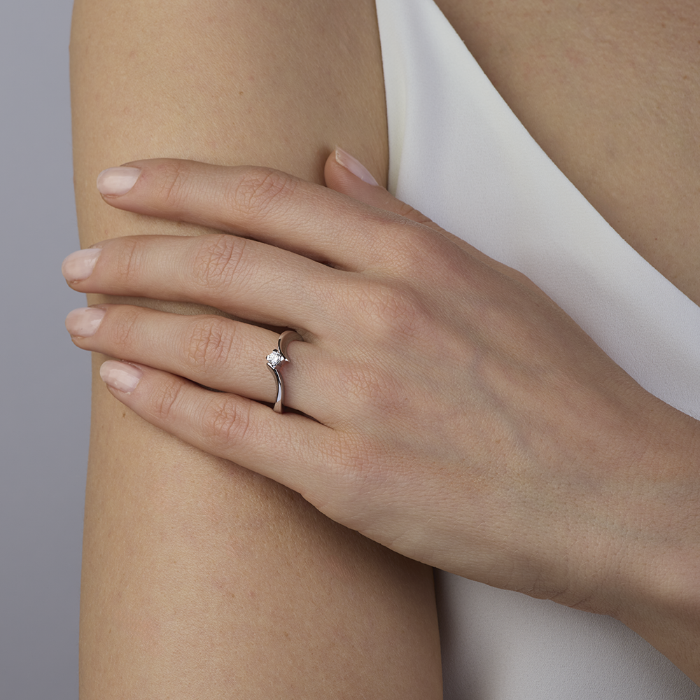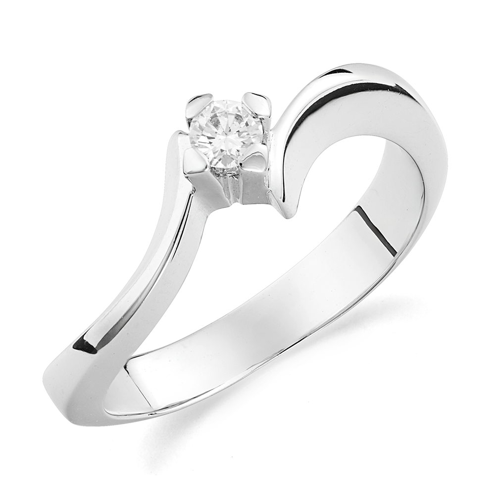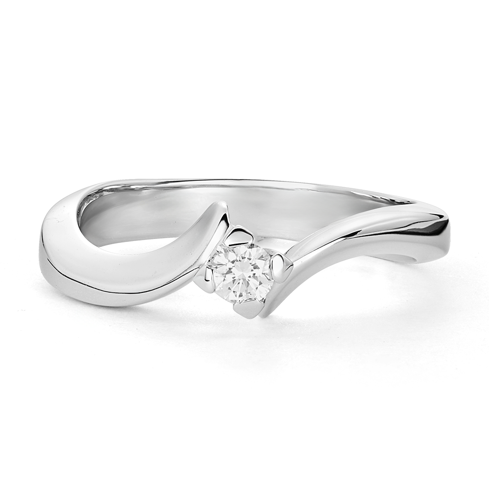 Anello solitario contrarié in oro bianco con diamante Ct. 0,12