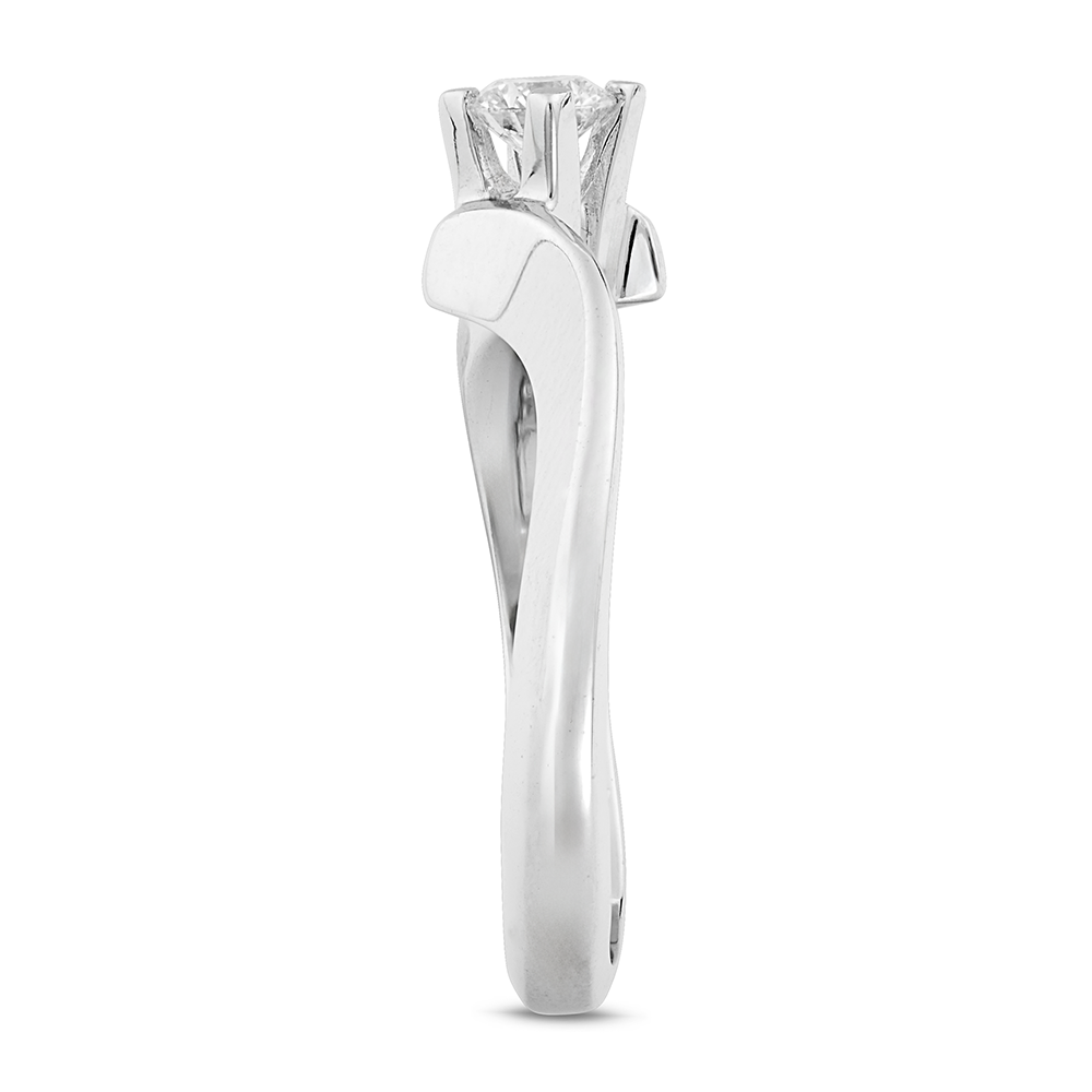 Un gioiello che racchiude un’emozione unica: l’anello solitario della Collezione "Promesse" è una creazione esclusiva, pensata per chi desidera suggellare un momento speciale. Realizzato in oro bianco 18 Kt., si distingue per il suo gambo bombato, che si trasforma in due lame contrapposte specchiate a contrarié, un dettaglio di raffinata eleganza che valorizza la pietra centrale.