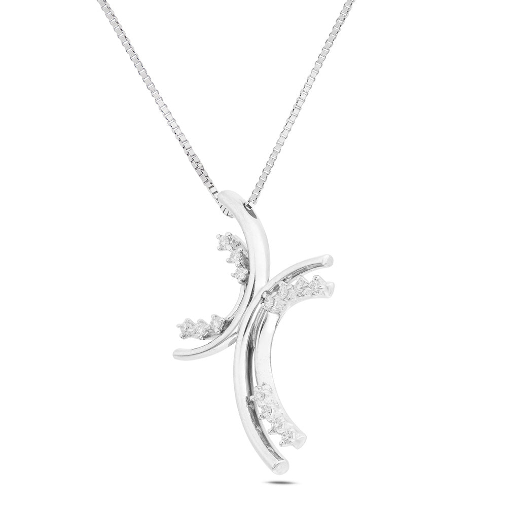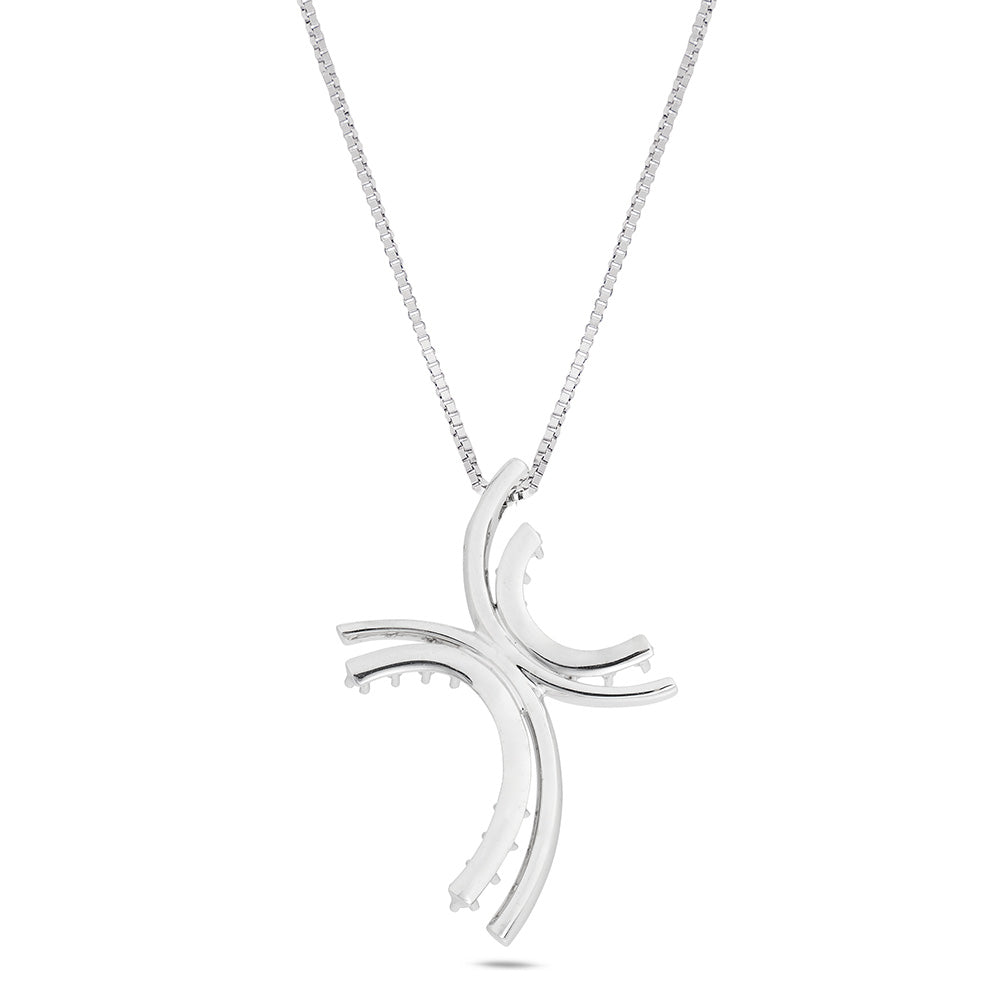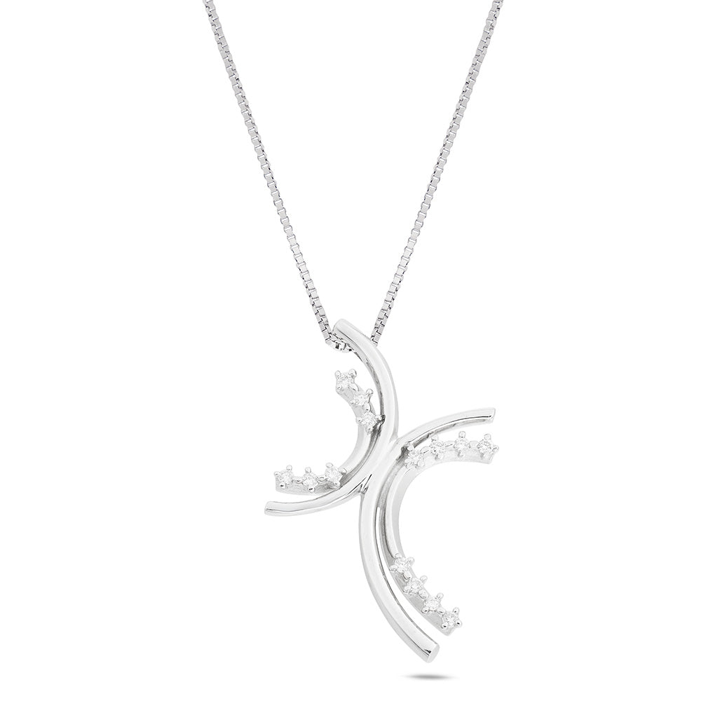 "Croce" necklace with contrarié blades in white gold with diamonds
