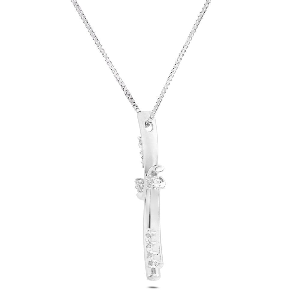 The pendant is enriched by 14 natural diamonds , for a total of 0.12 ct , with G color and SI1 purity . The “ prong-thread ” setting enhances the brightness of the stones, giving a touch of unparalleled brilliance. Every detail is handmade with the microfusion technique, an ancient art that guarantees top-quality craftsmanship, entirely Made in Italy .