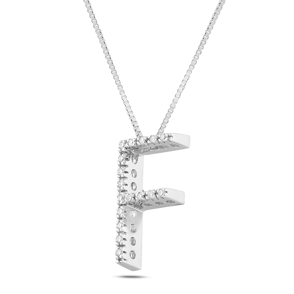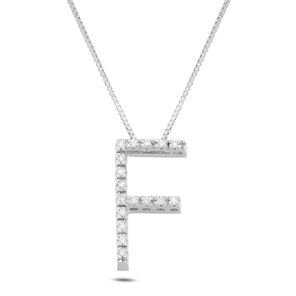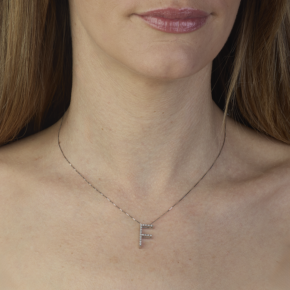 Refined and sophisticated, the 18 Kt. white gold necklace from the "Letters" collection is a jewel that combines elegance and customization . The pendant, carefully crafted in the shape of the letter "F", is embellished with 17 natural diamonds , for a total of 0.11 ct , selected in Color G and Clarity VS1 to guarantee exceptional brilliance.