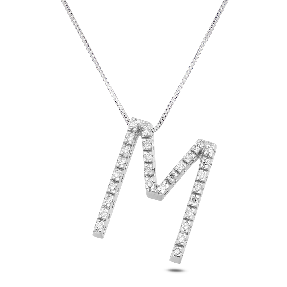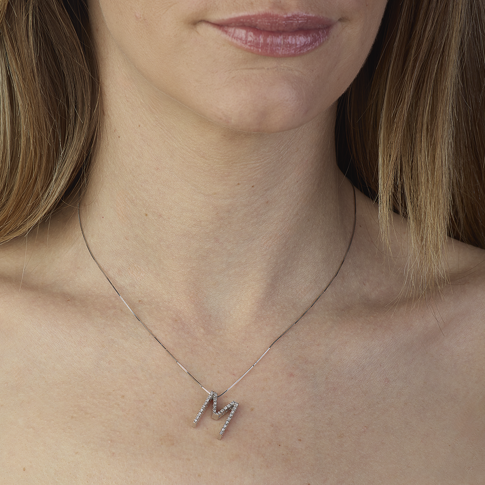 A jewel that tells an emotion, the 18 Kt. white gold necklace from the "Letters" collection is an elegant celebration of the personality of the wearer. The letter "M" pendant is embellished with 28 natural diamonds , for a total of 0.19 ct , carefully selected in G color and VS1 clarity , which guarantee extraordinary brightness and eternal charm.