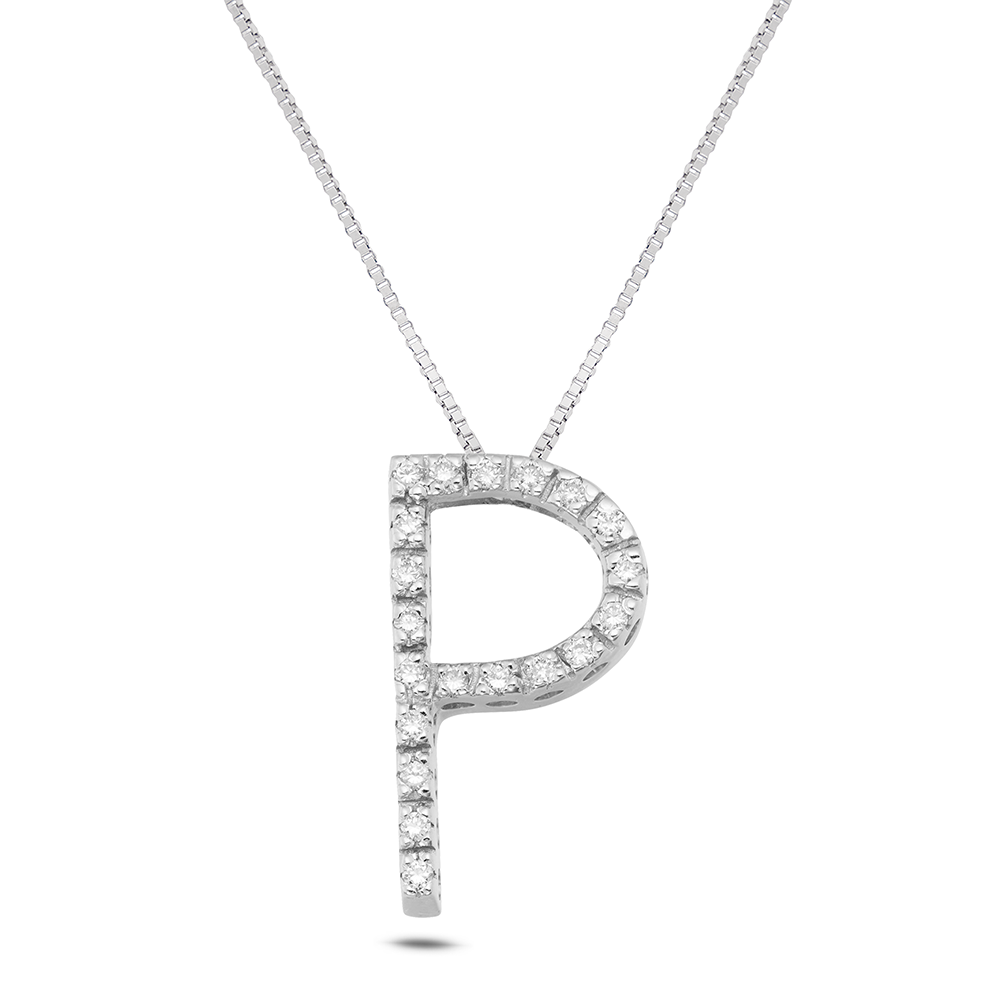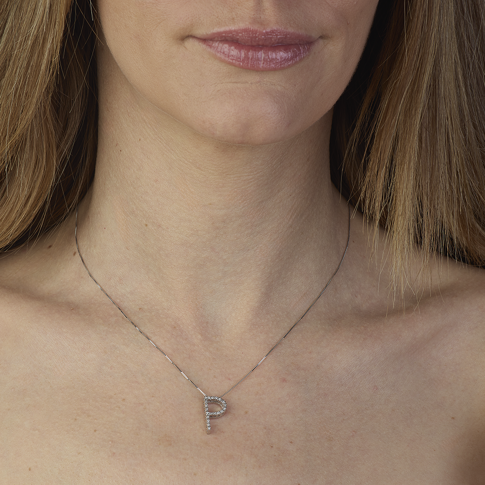 A refined jewel that combines elegance and customization: the 18 Kt. white gold necklace from the "Letters" collection is a tribute to individuality. The letter "P" pendant is embellished with 20 natural diamonds , for a total of 0.13 ct , carefully selected in G color and VS1 clarity , ensuring extraordinary brightness.