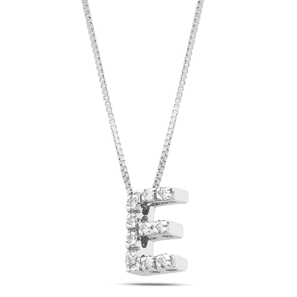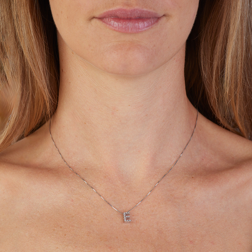 From the "Letters" collection, our 18 Kt. white gold necklace represents a unique and timeless jewel. The pendant, in the shape of the letter "E", is embellished with 10 diamonds , with a total weight of 0.07 Ct , with color G and purity Vs1, set with the wire-claw technique, which gives elegance and refinement without compromising the safety of the stones.