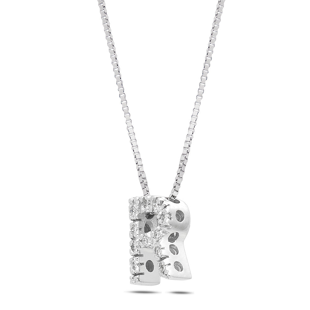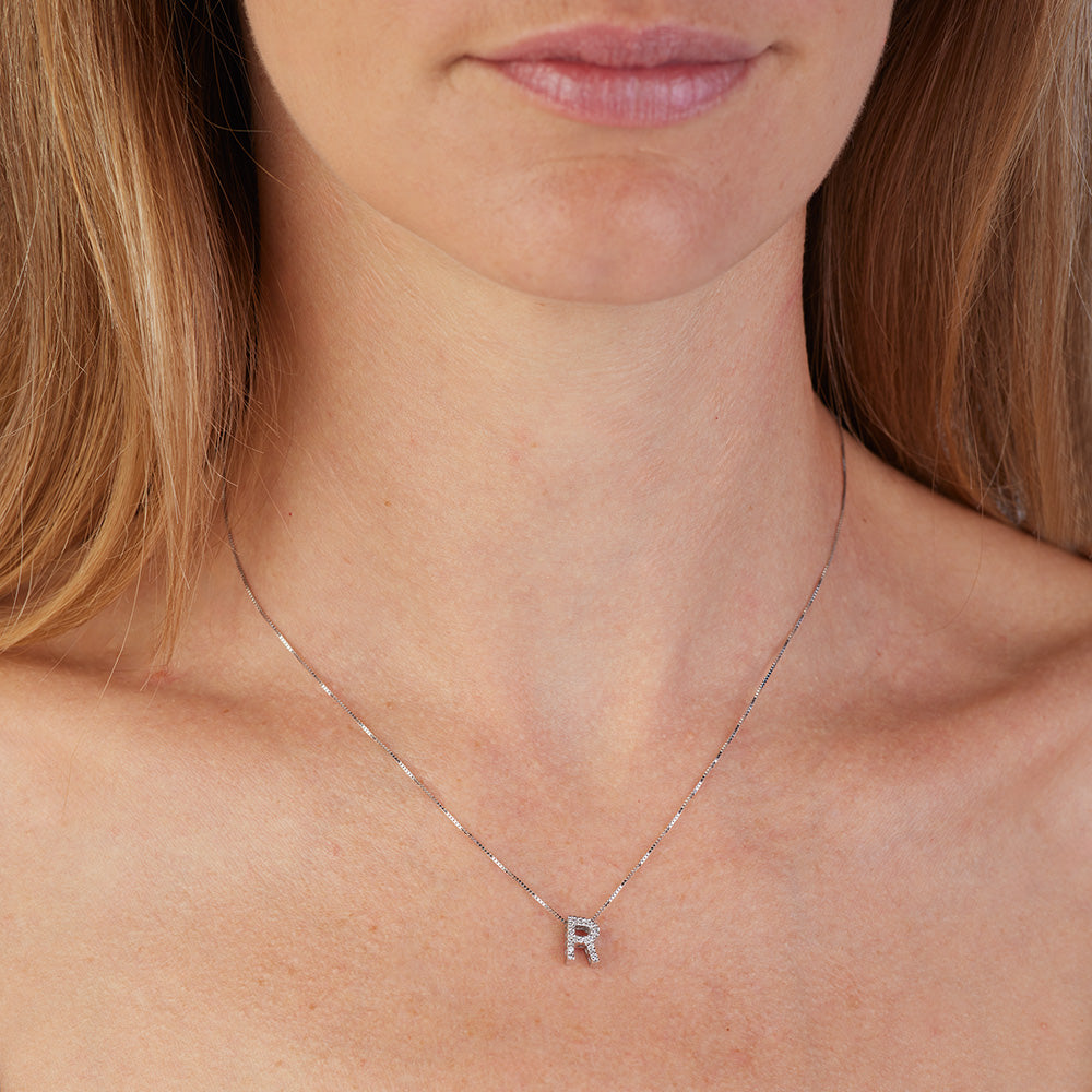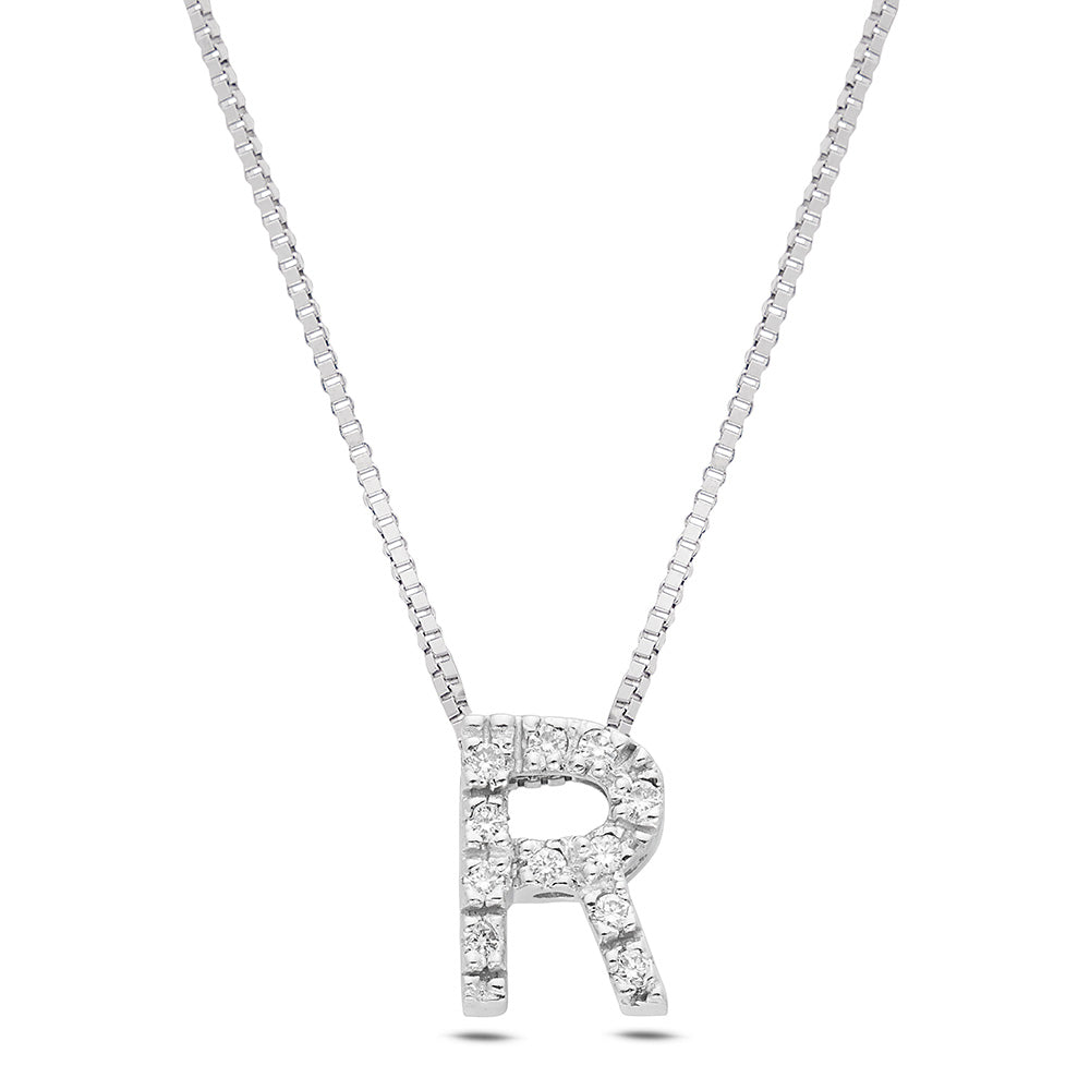 Small Letter "R" Necklace in Gold with Diamonds