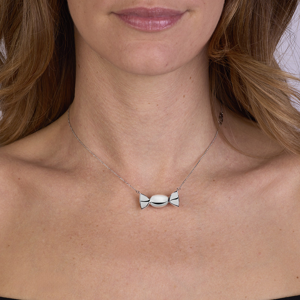 Entièrement réalisé à la main en or blanc 18 carats , le pendentif White Glossy se distingue par son pendentif central ovale en forme de bonbon , au profil harmonieux et à la surface polie qui reflète la lumière avec élégance et délicatesse. La chaîne maille forçat à facettes diamantées , ajustable de 38,50 à 46,50 cm, est ornée d'un fermoir double infini en or blanc , symbole d' unions éternelles et indissolubles , qui apporte une touche de raffinement et de fonctionnalité à l'ensemble. Chaque détail témoigne d' un savoir-faire d'exception , une authentique expression de l'excellence du Made in Italy .