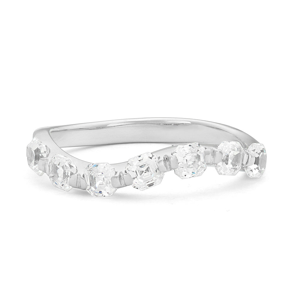 Une bague qui enchante par son élégance intemporelle : cette bague vague avec 7 zircons cubiques taille princesse est en or blanc 18 carats et chaque détail reflète un savoir-faire italien de haute qualité.