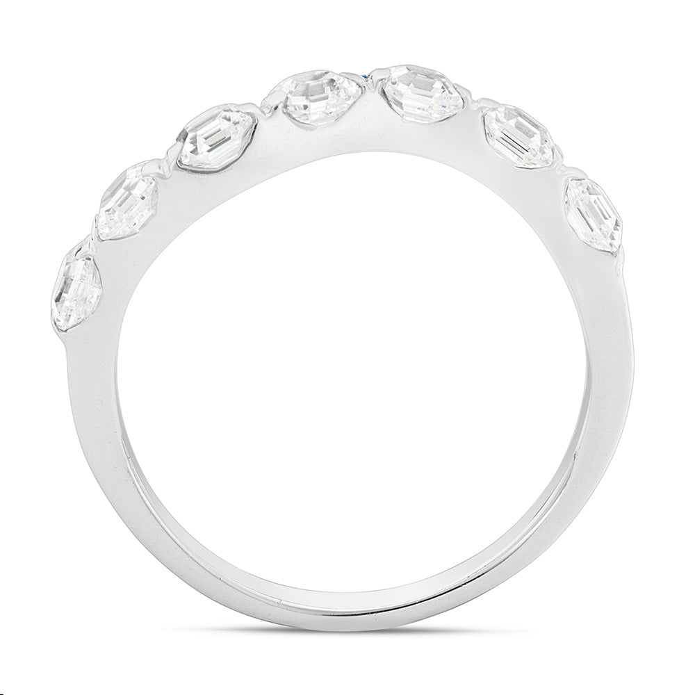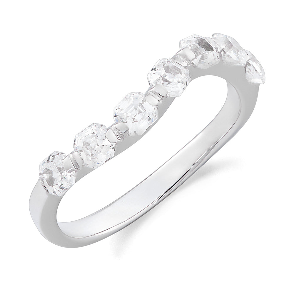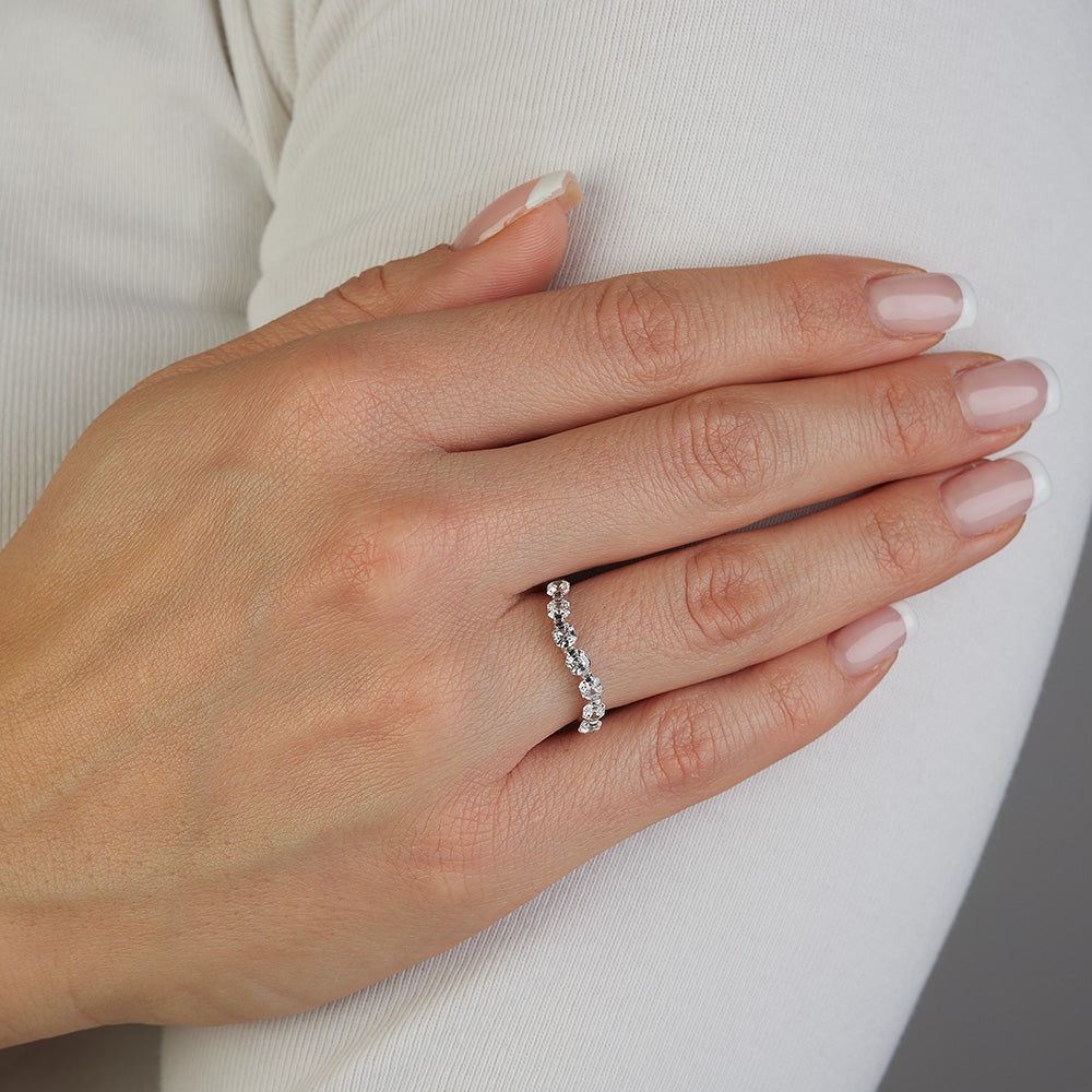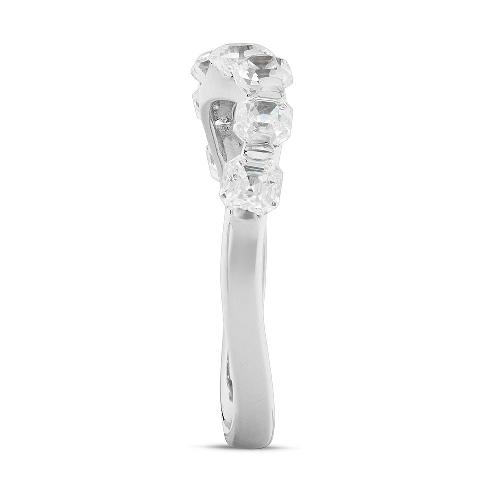 Bague vague princesse en or blanc 7 pierres avec oxyde de zirconium blanc