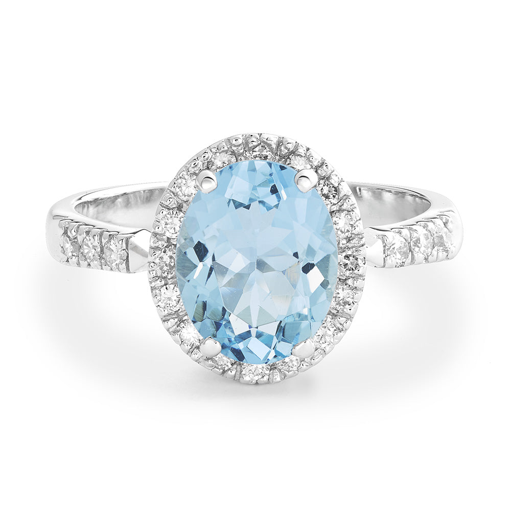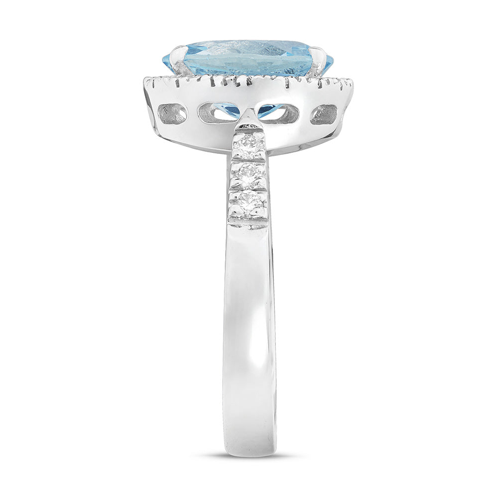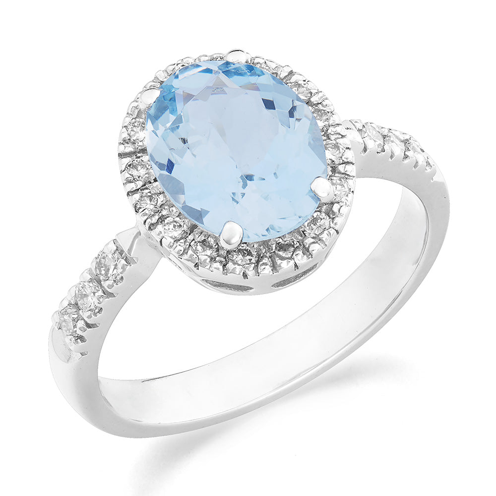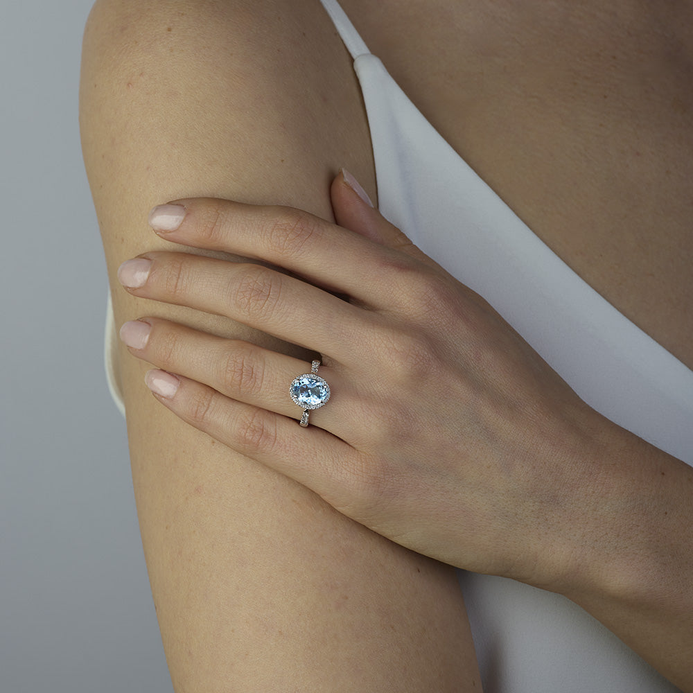 Bague "Halo" en or avec diamants et aigue-marine ovale 10x8