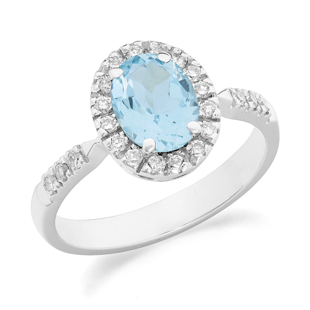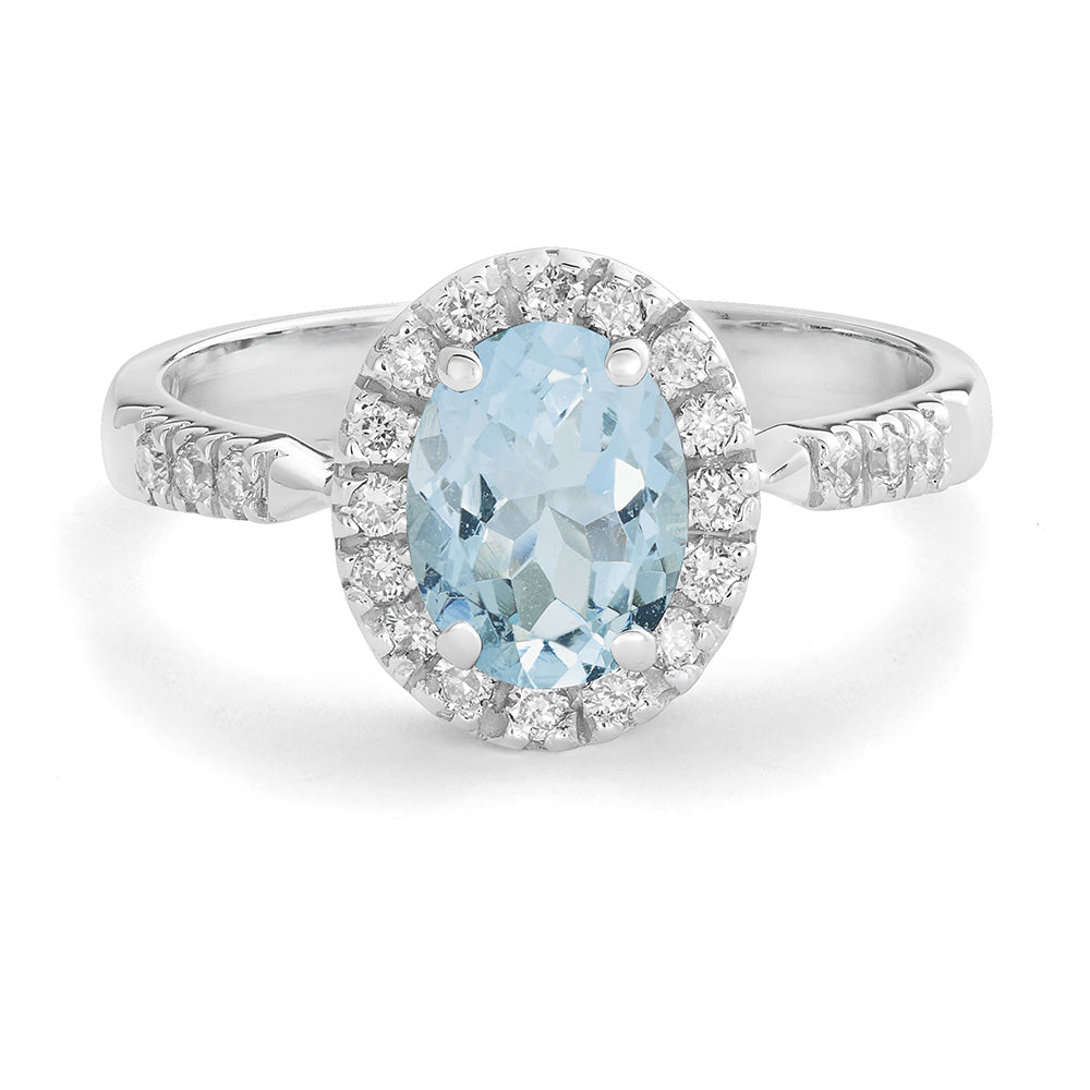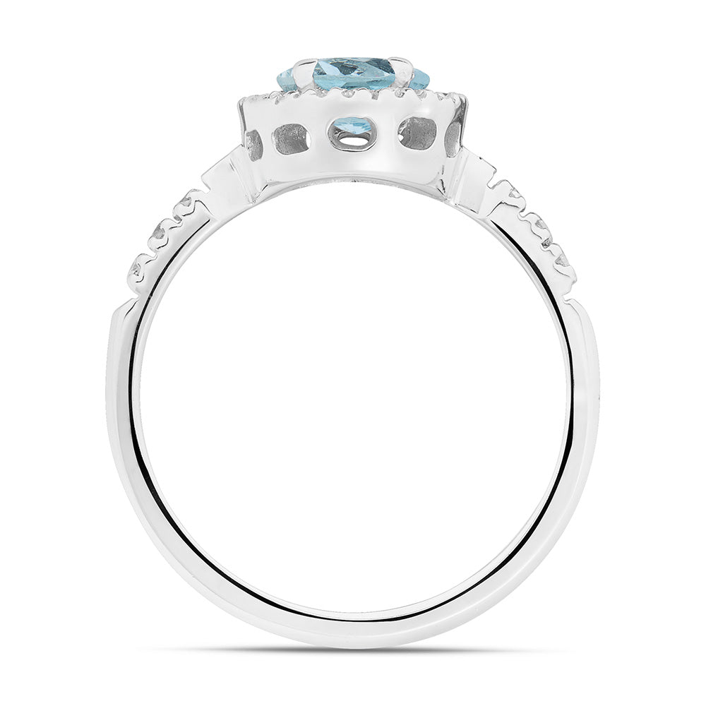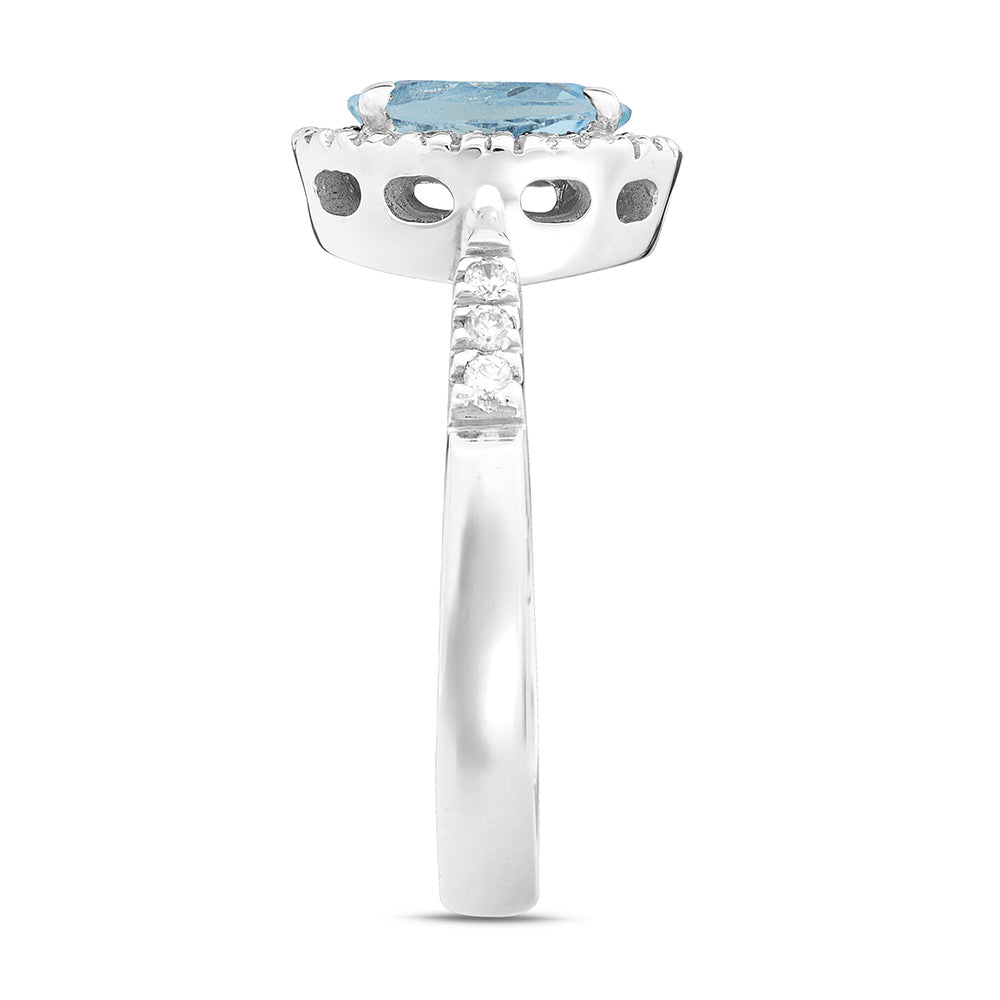 L'élégance prend forme dans la bague de style Halo de la collection Idilio , un chef-d'œuvre en or blanc 18 carats qui capture la pureté et la luminosité de la mer. Au centre, une splendide aigue-marine bleue naturelle , taille ovale , avec des dimensions de 8 x 6 mm et un poids de Ct. 1.10 , diffuse une lumière cristalline incomparable. Pierre de sérénité et de clarté intérieure, l'aigue-marine a toujours été un symbole de paix et de protection, parfaite pour ceux qui recherchent un bijou avec une signification profonde.
