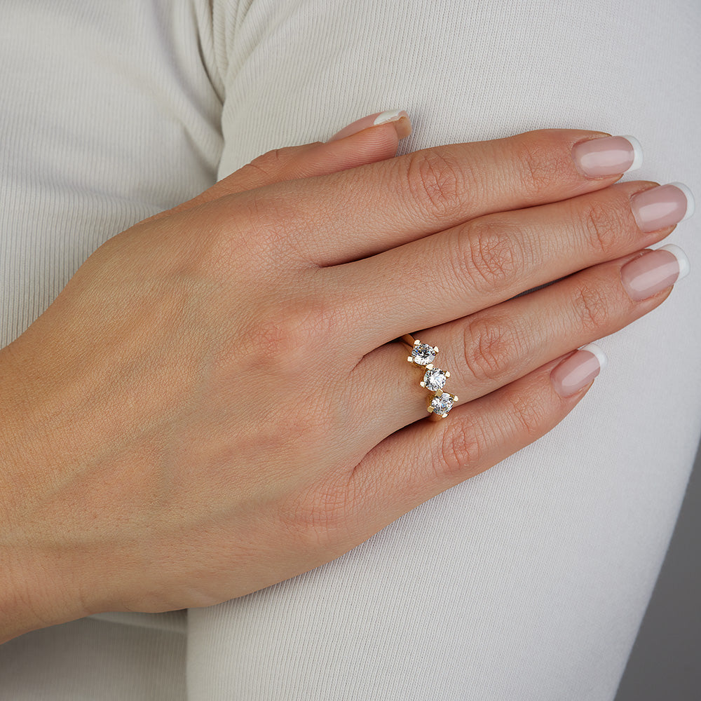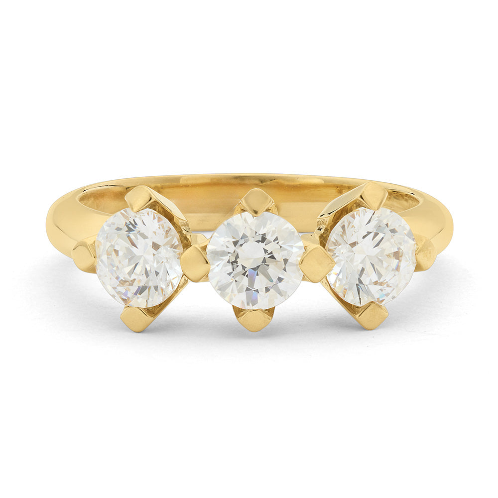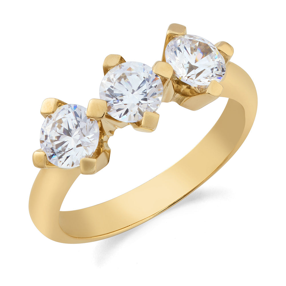 Une bague enchanteresse, parfaite pour celles qui aiment l'élégance contemporaine et l'exclusivité. Fabriquée en or jaune 18 carats , cette bague Trilogy présente un design attrayant avec sa tige à section bombée et sa monture à griffes carrées.