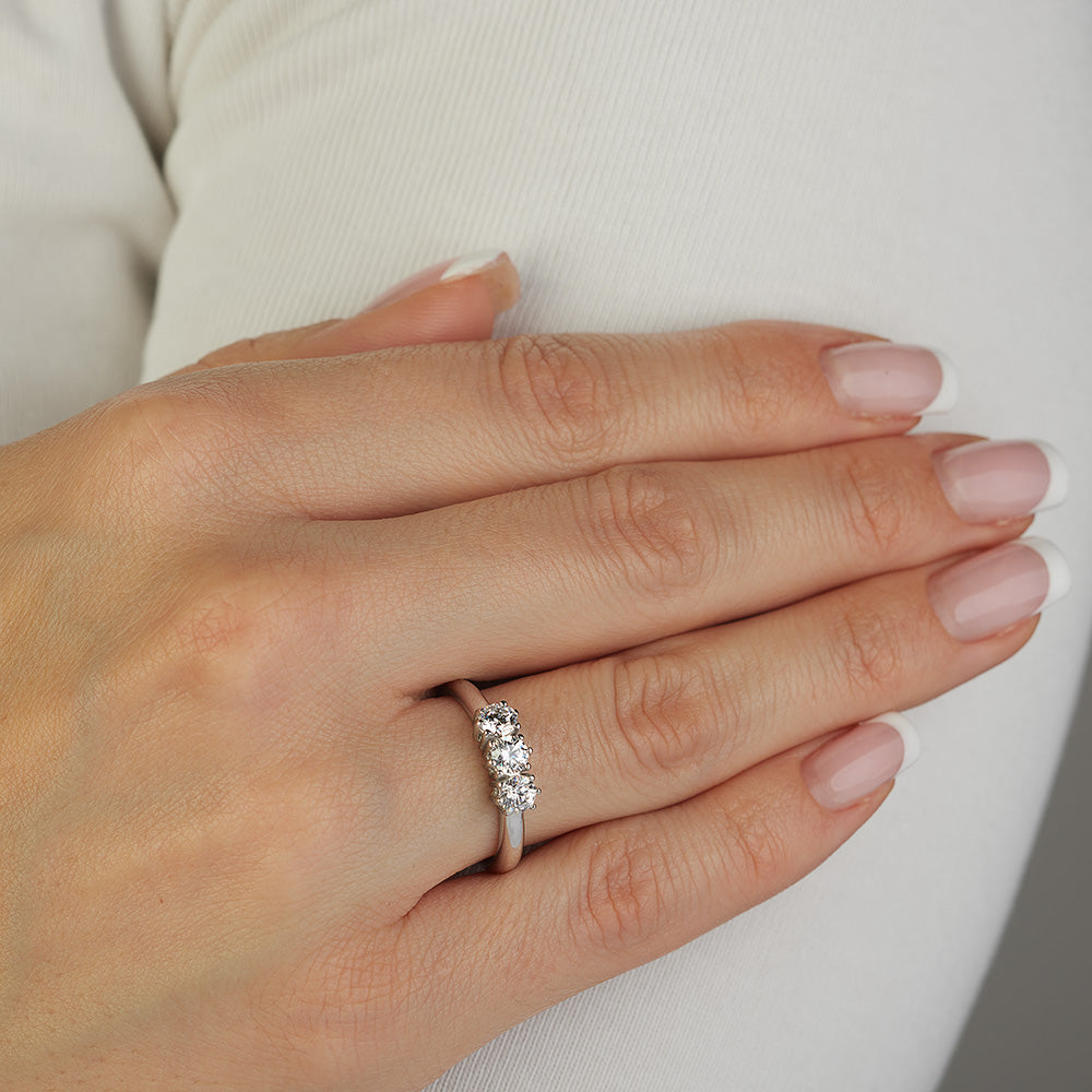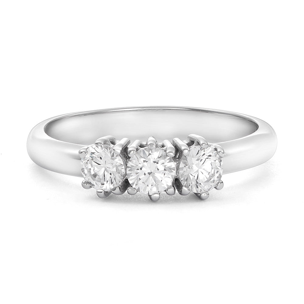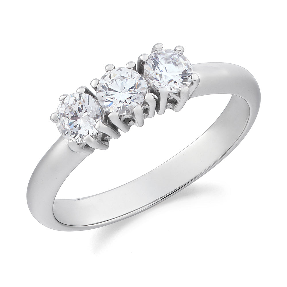 Bague Trilogie Classique 6 Griffes Or Blanc avec Zircone Cubique Blanche