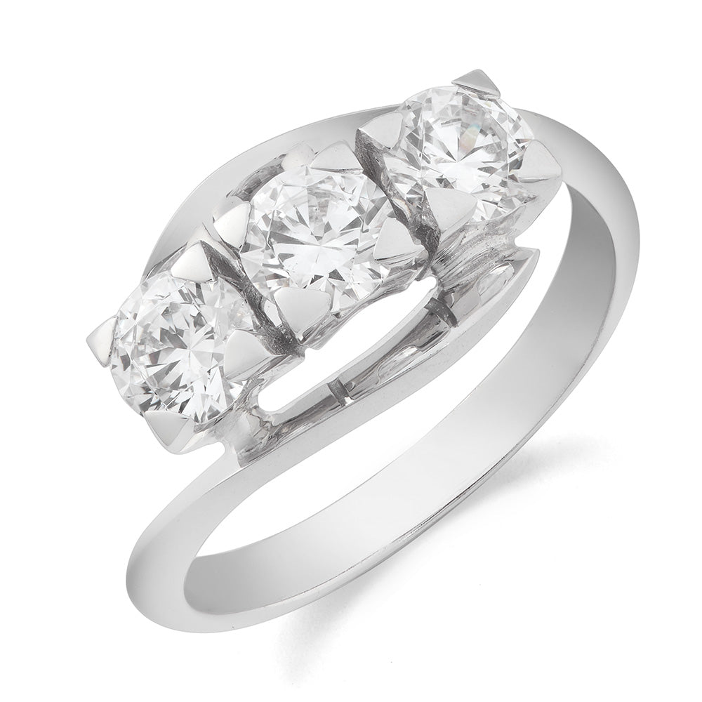 Bague trilogie miroir en or blanc avec zircone cubique blanche