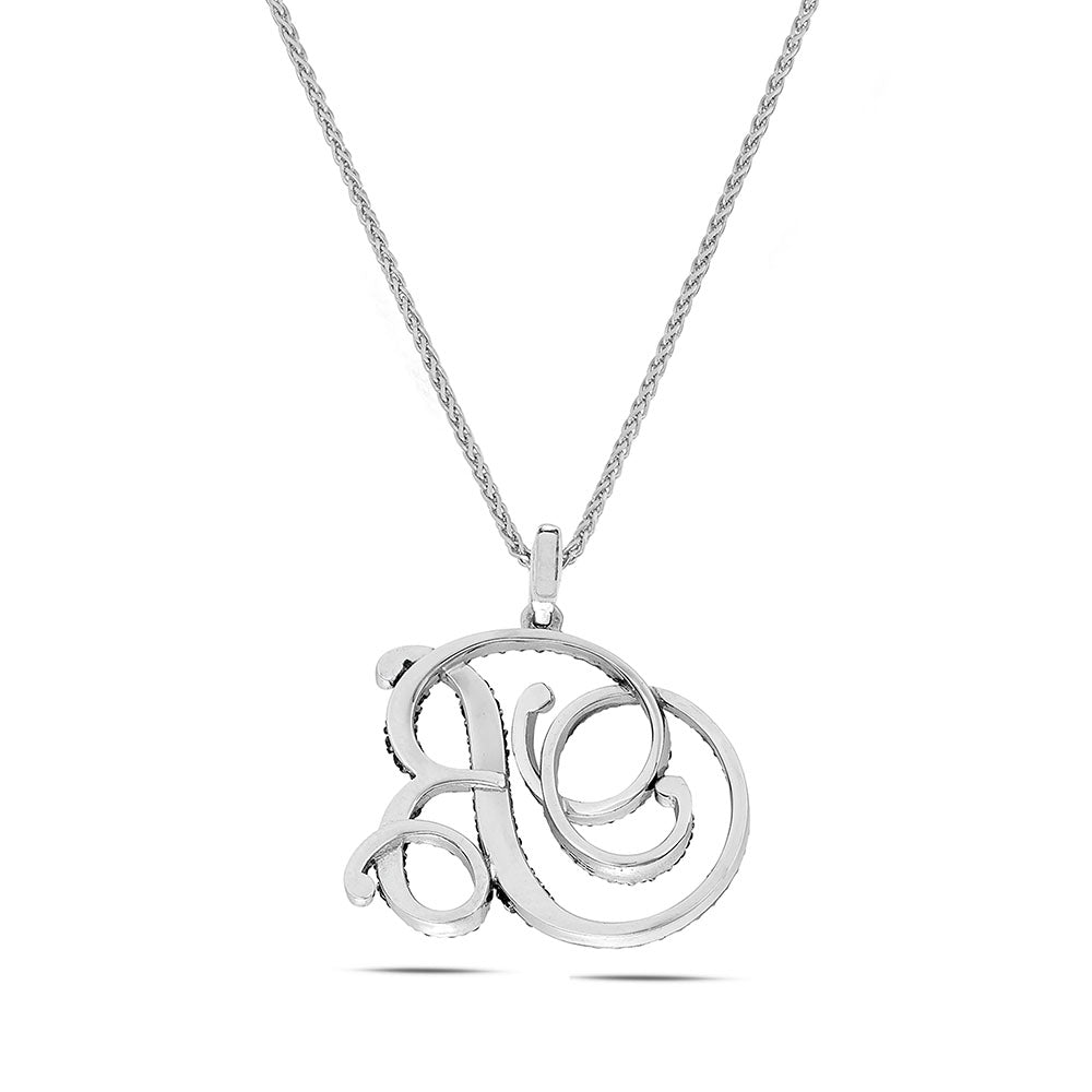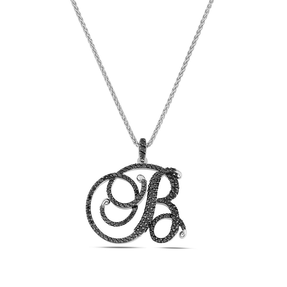 Collana lettera "B" stile barocco in oro bianco con diamanti neri