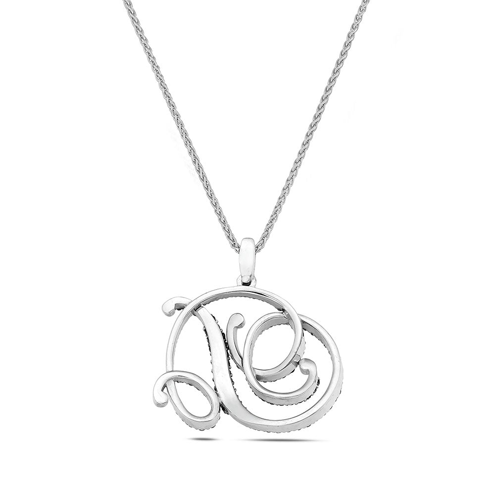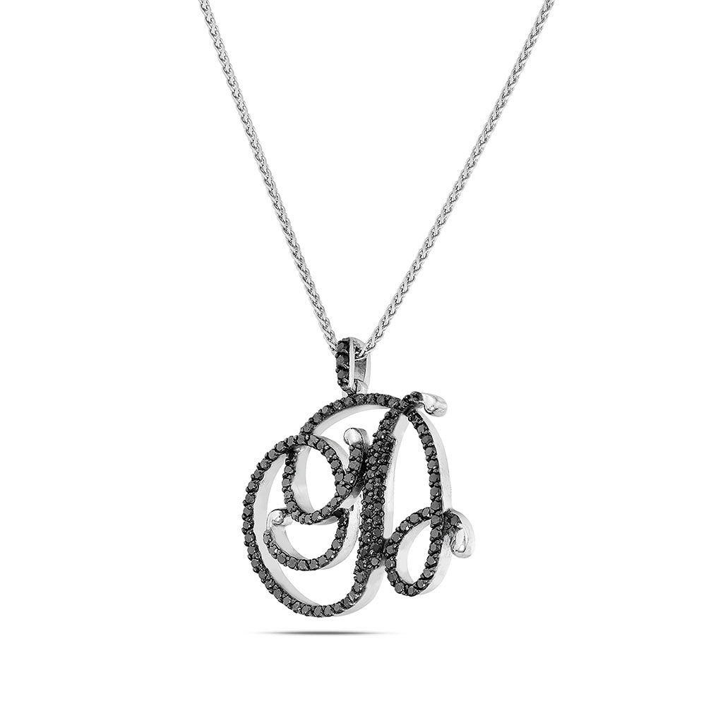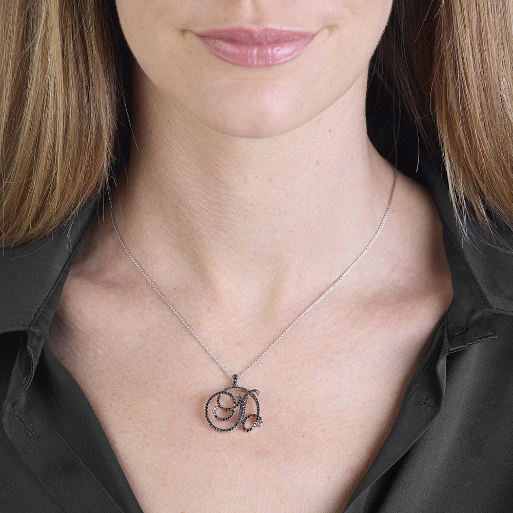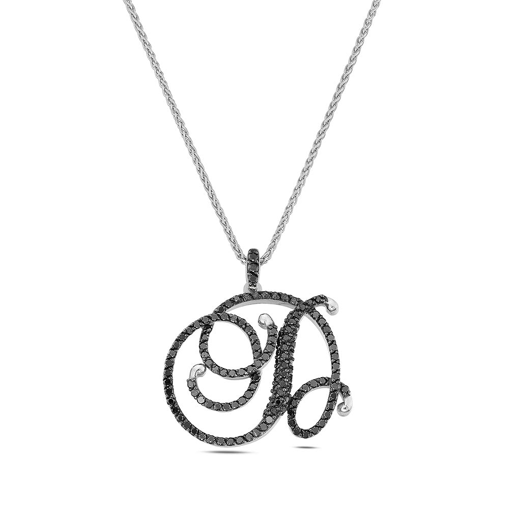 Collana lettera "D" stile barocco in oro bianco con diamanti neri