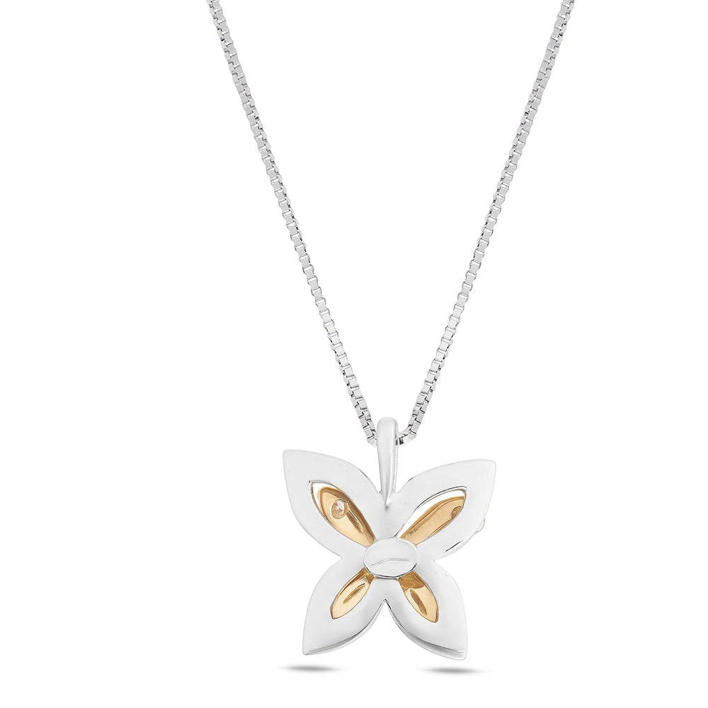 Collana Coccole, farfalla in oro bianco e rosa con diamanti