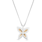 Un’eleganza senza tempo si unisce al simbolismo della farfalla nella collana della Collezione Coccole. Realizzata in oro bianco e rosa 18 Kt, questa creazione esprime delicatezza e maestria artigianale. La catena veneziana in oro bianco sostiene un ciondolo a doppia farfalla sovrapposta: la base in oro bianco e la parte superiore in oro rosa creano un contrasto raffinato e armonioso.